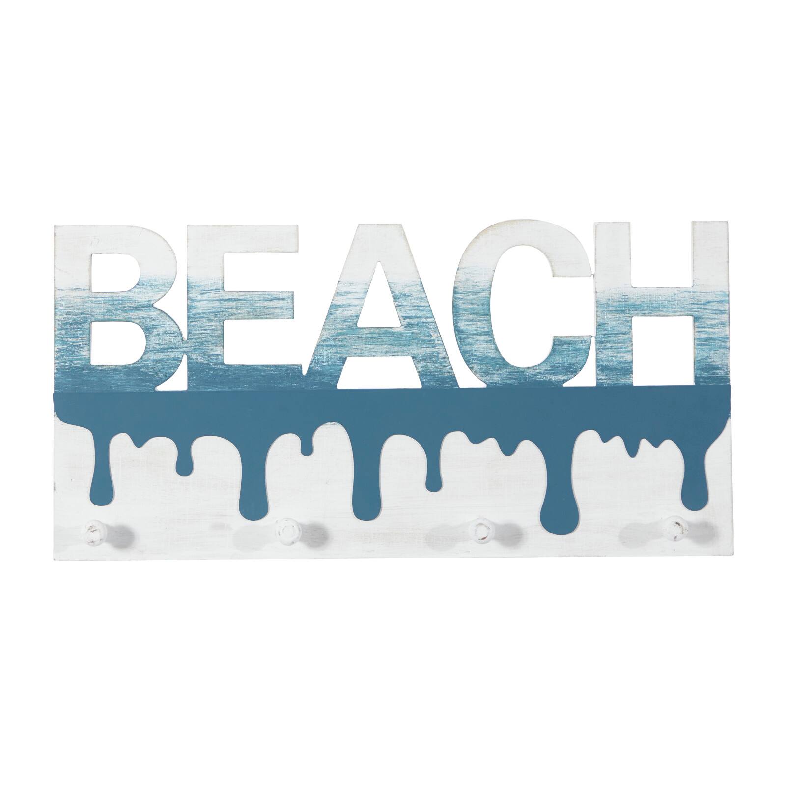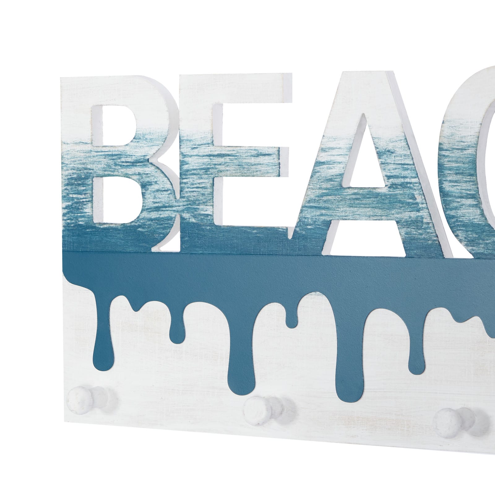 Blue Wood Coastal Wall Hook, 10" x 19" x 2"