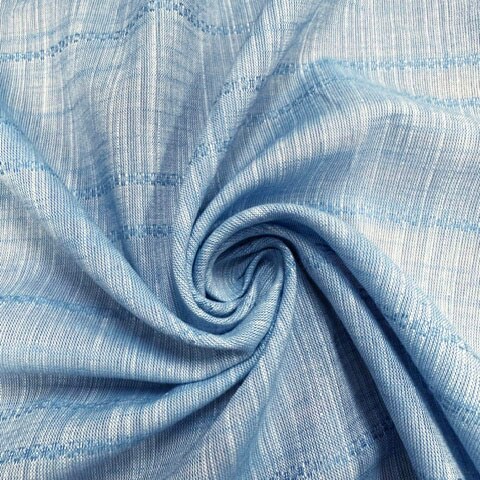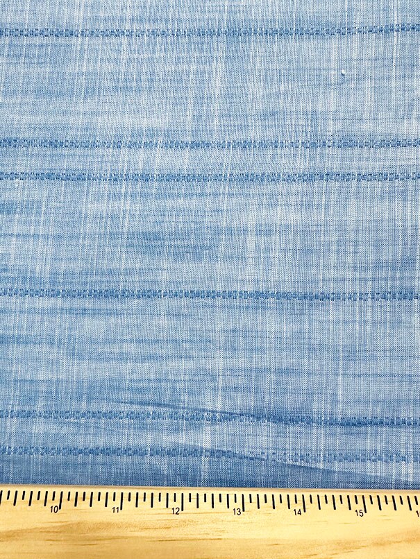 Blue Woven Stripe Rayon Linen Tea Towel Fabric By the Yard