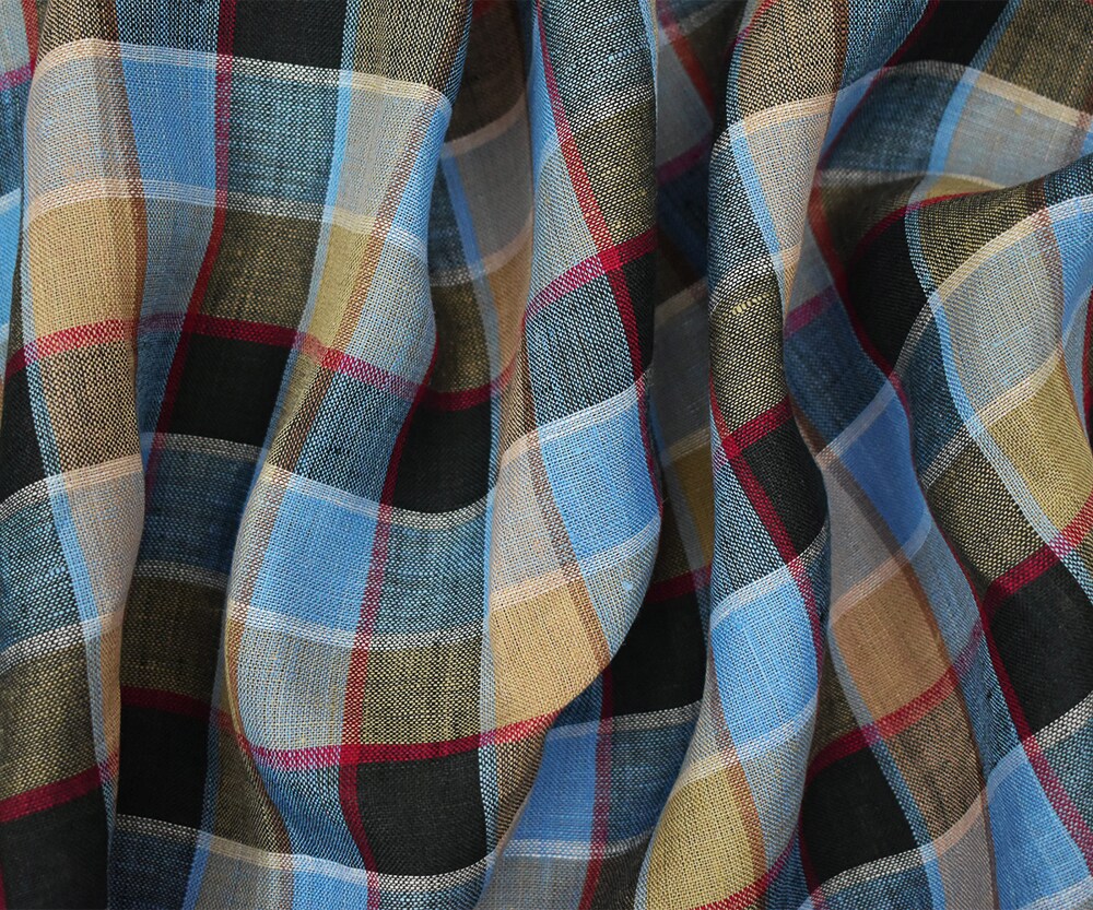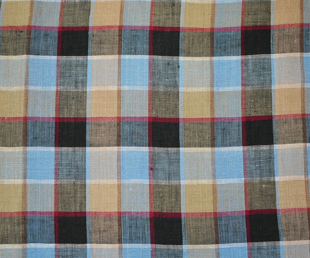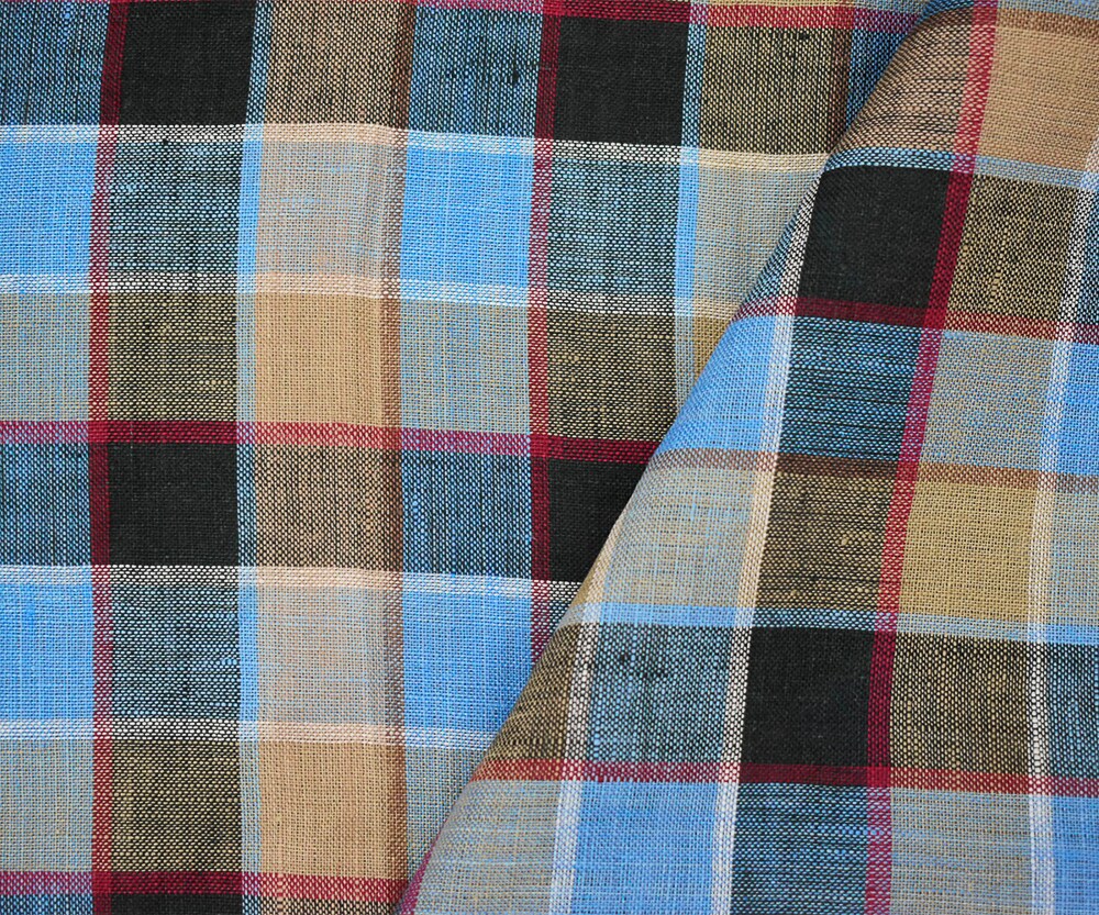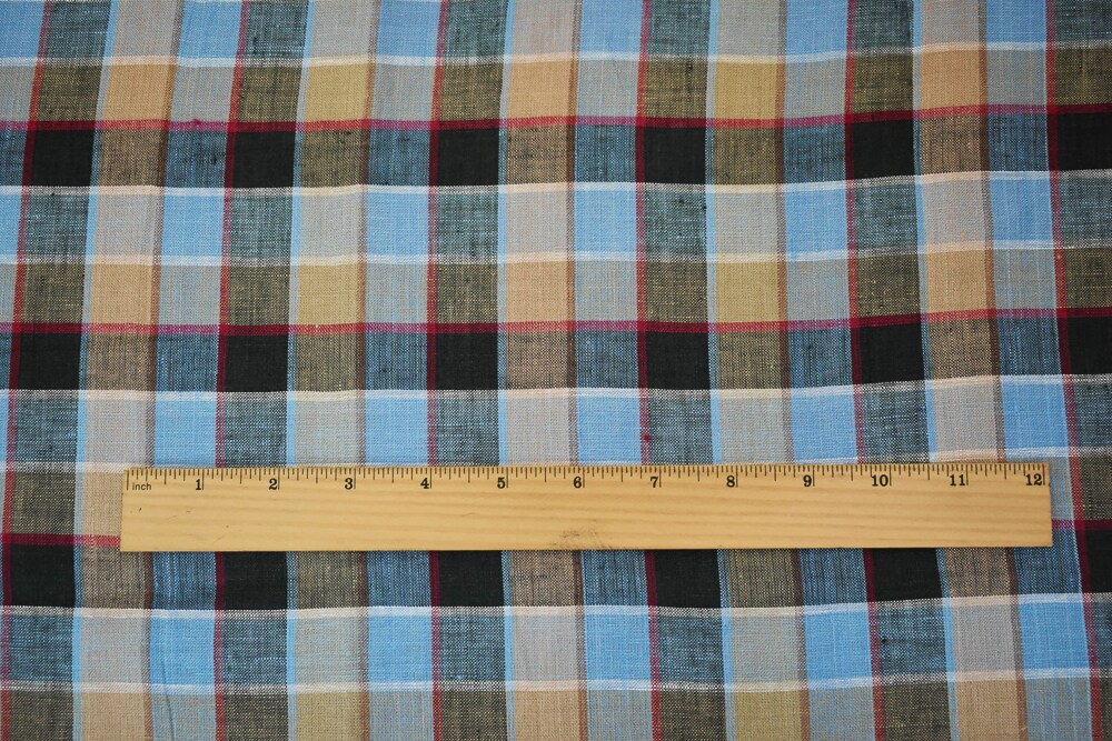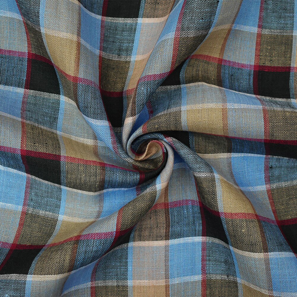 Blue-Beige-Multi Check Linen Woven Fabric By the Yard