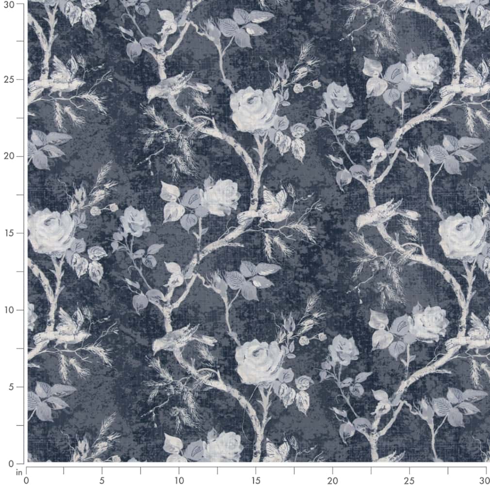 Bluebird - Blue Floral Upholstery Fabric 54 Inches"