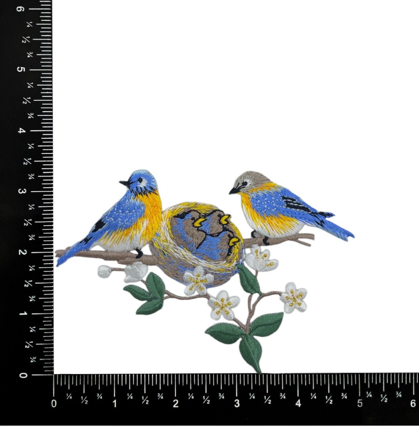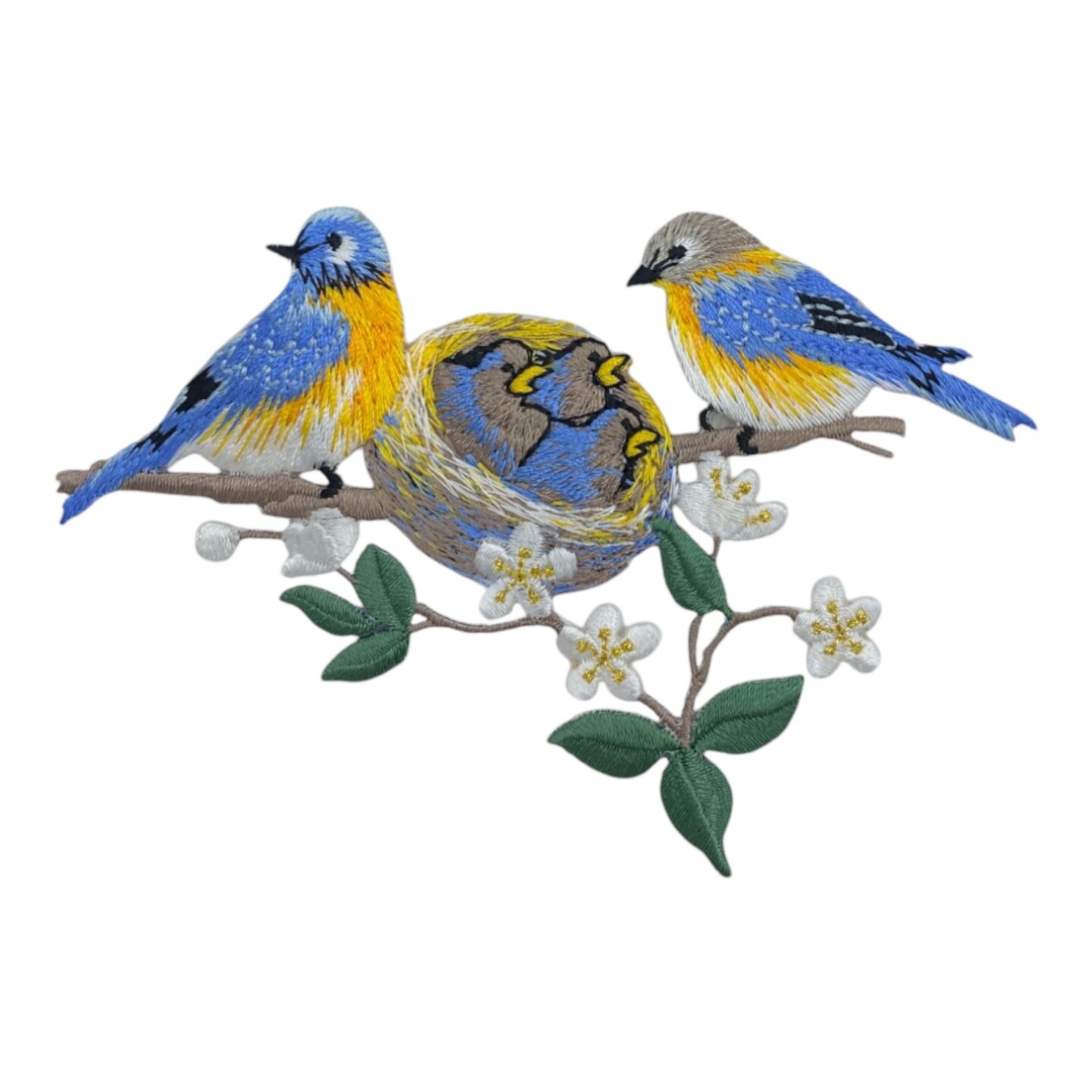 Bluebird Nest, Birds, Embroidered, Iron on Patch