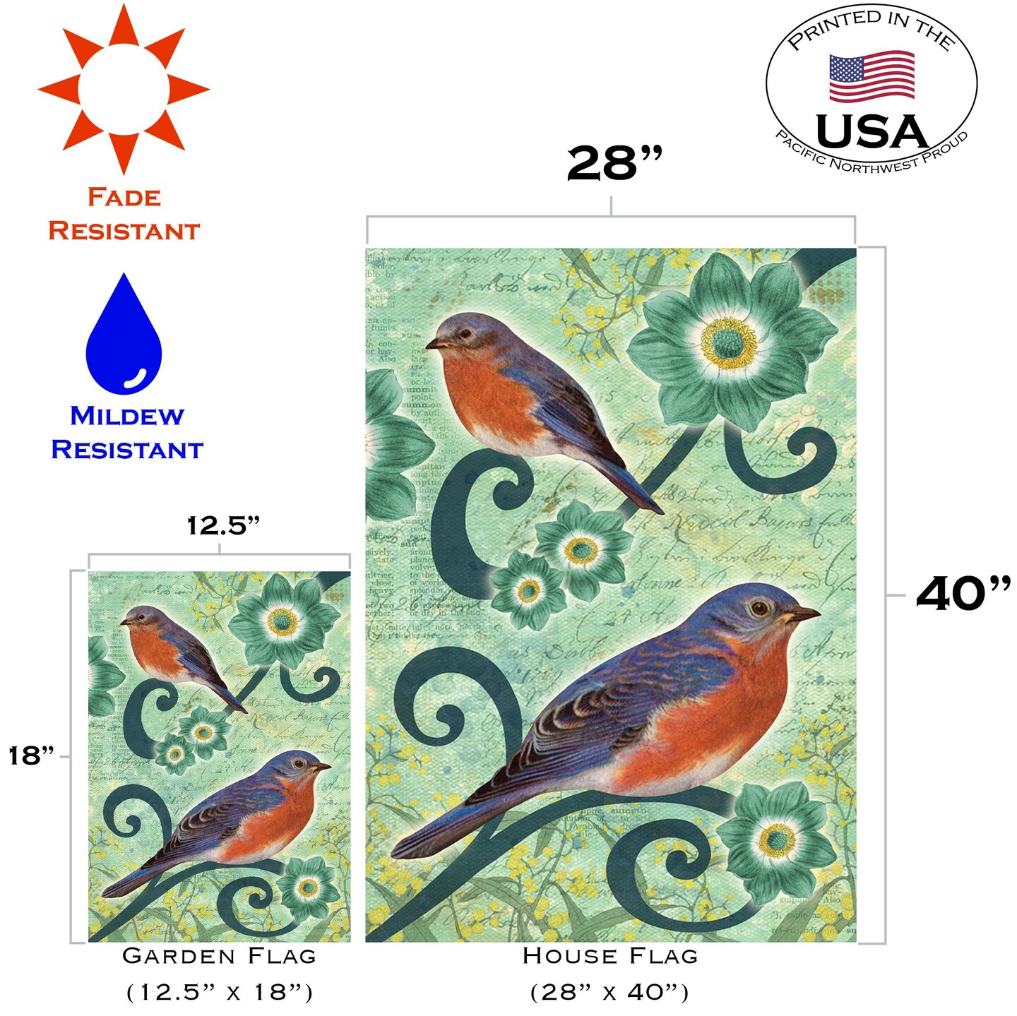Bluebirds Decorative Bird Flag