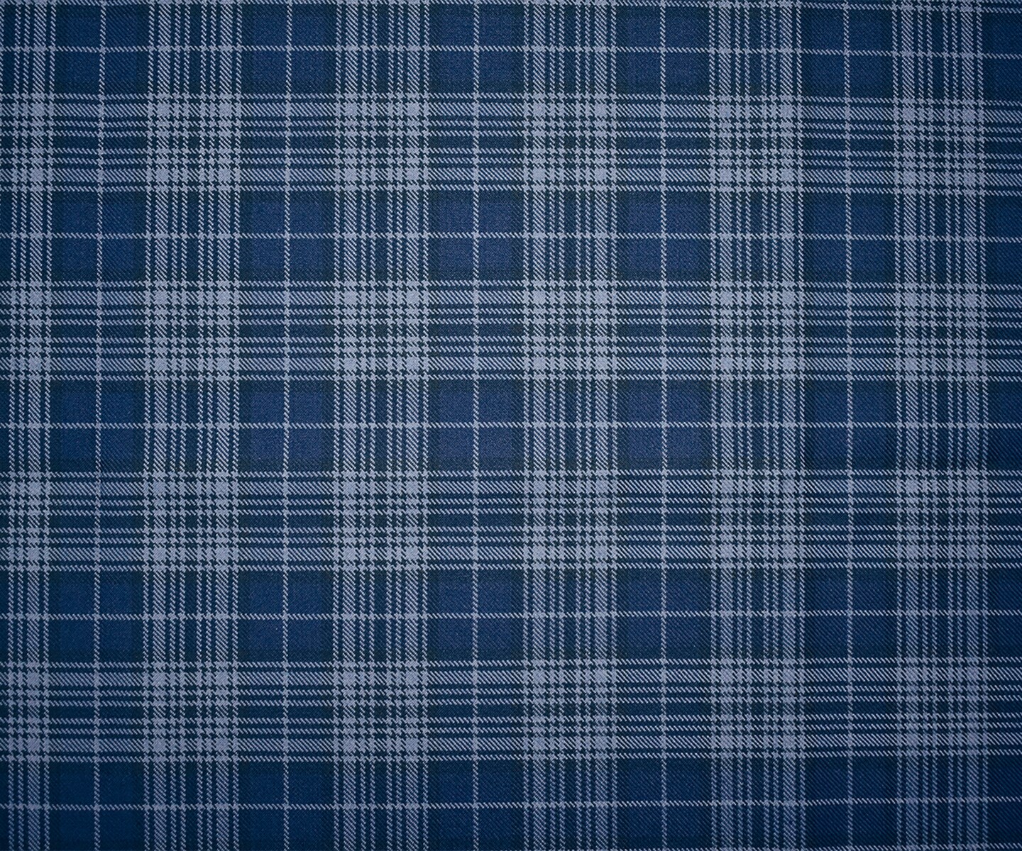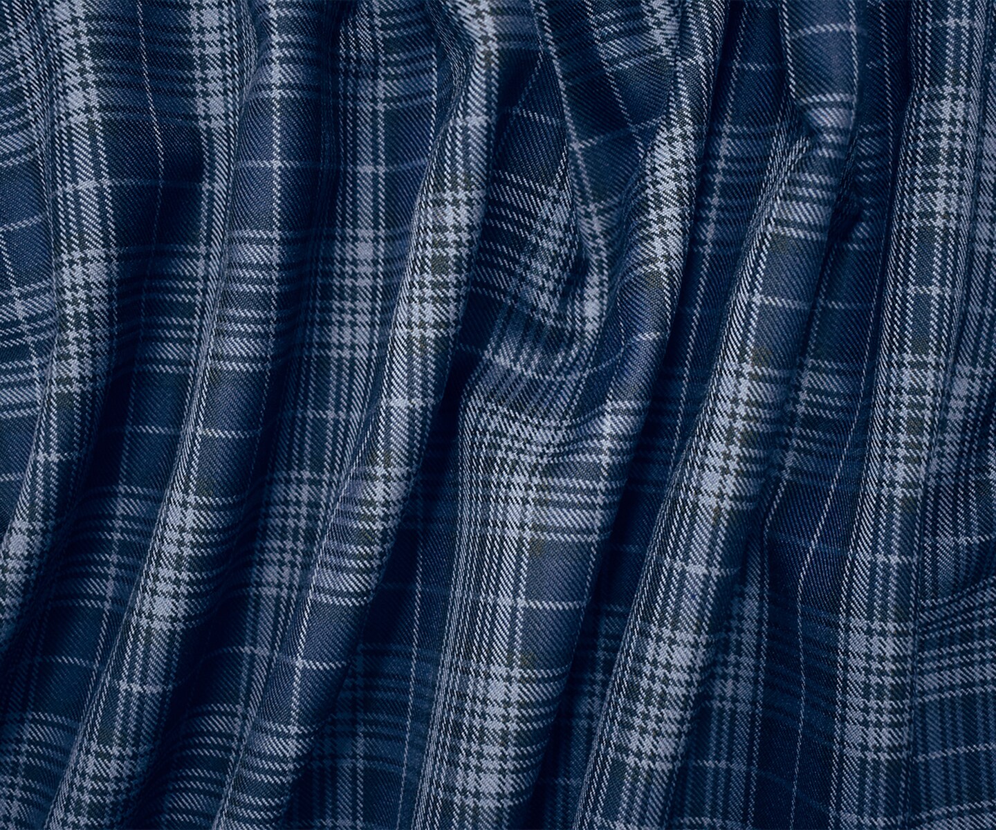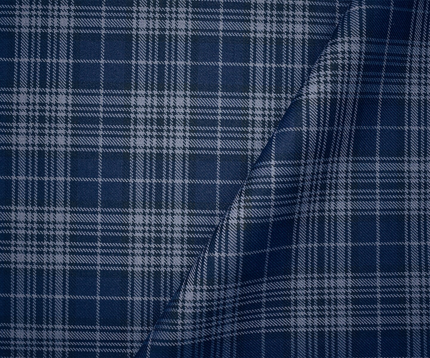 Blue-Black Wool-Polyester Plaid Woven Twill Suiting Fabric By the Yard