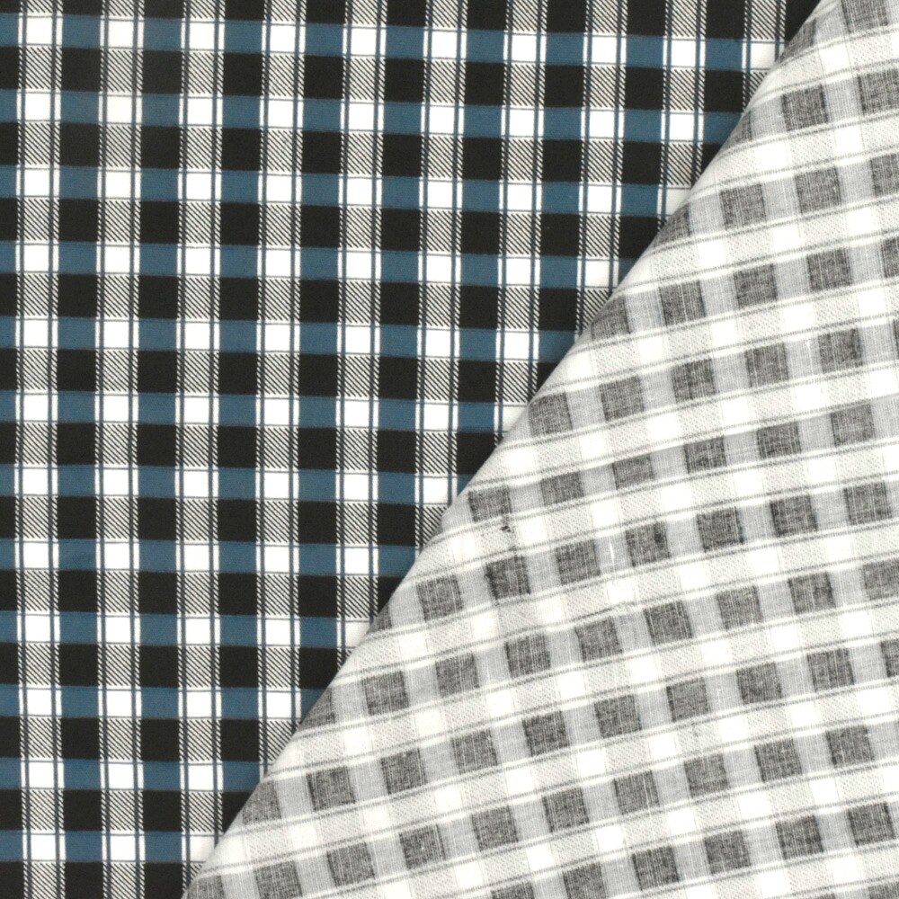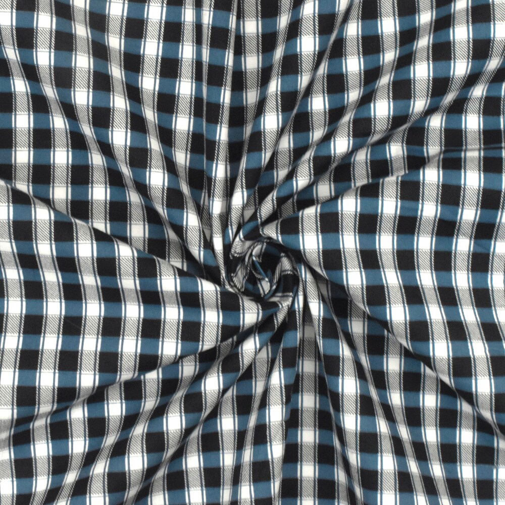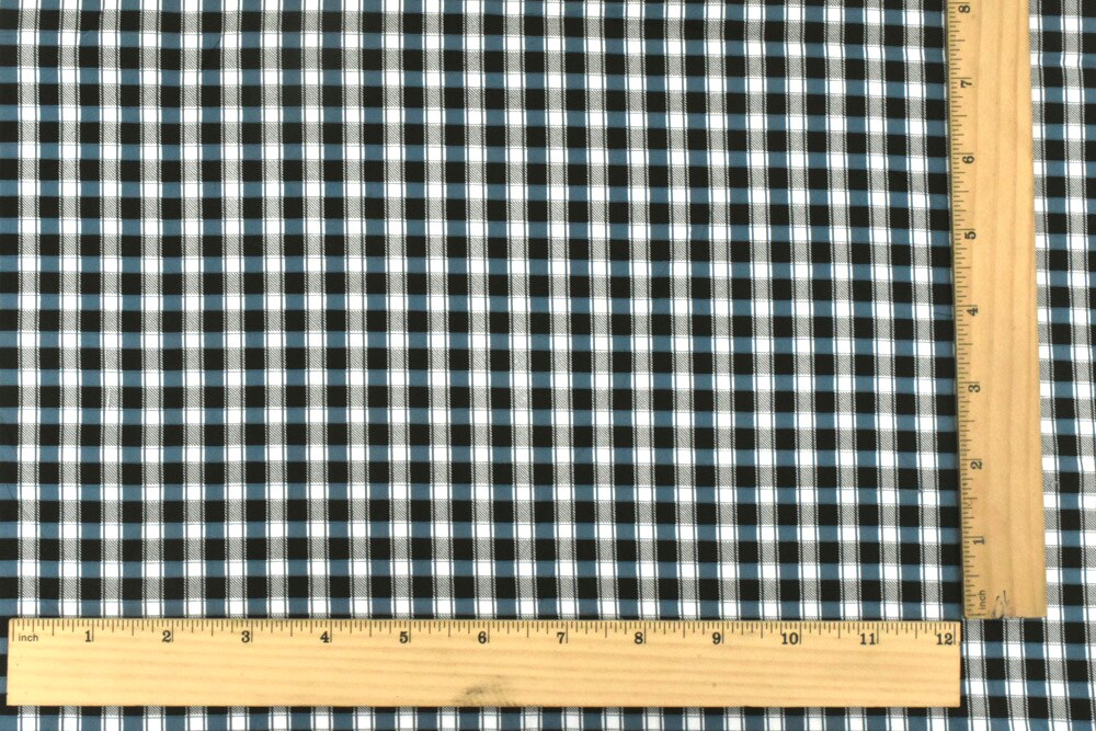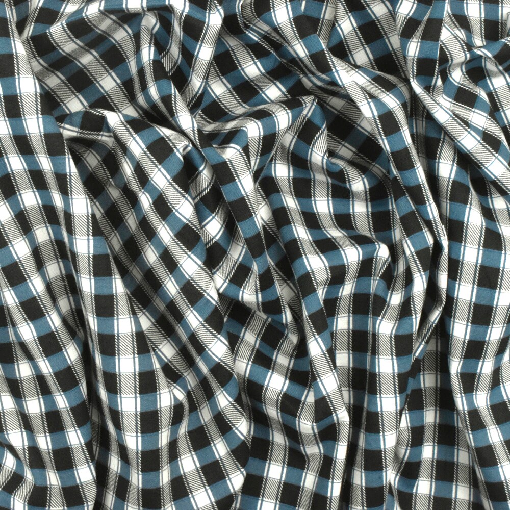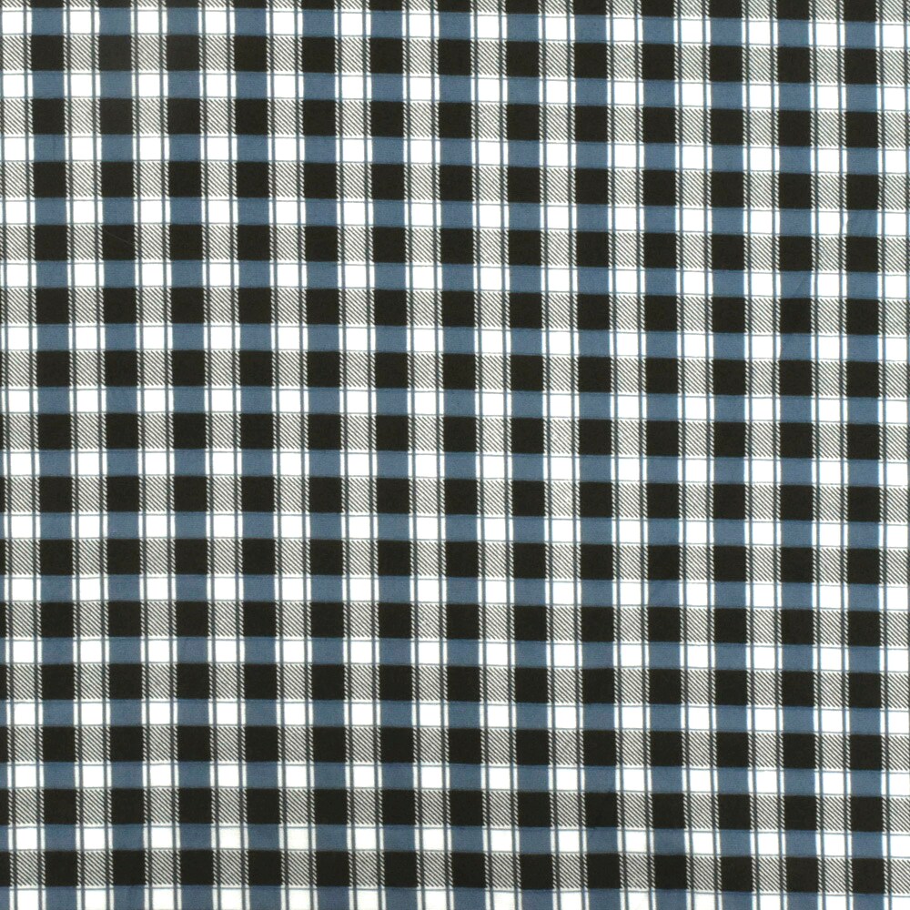 Blue-Black-Ivory Plaid Print Stretch Cotton Broadcloth Woven Fabric By the Yard