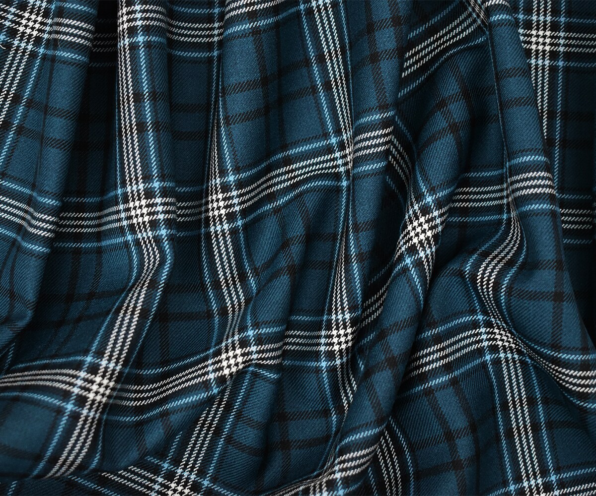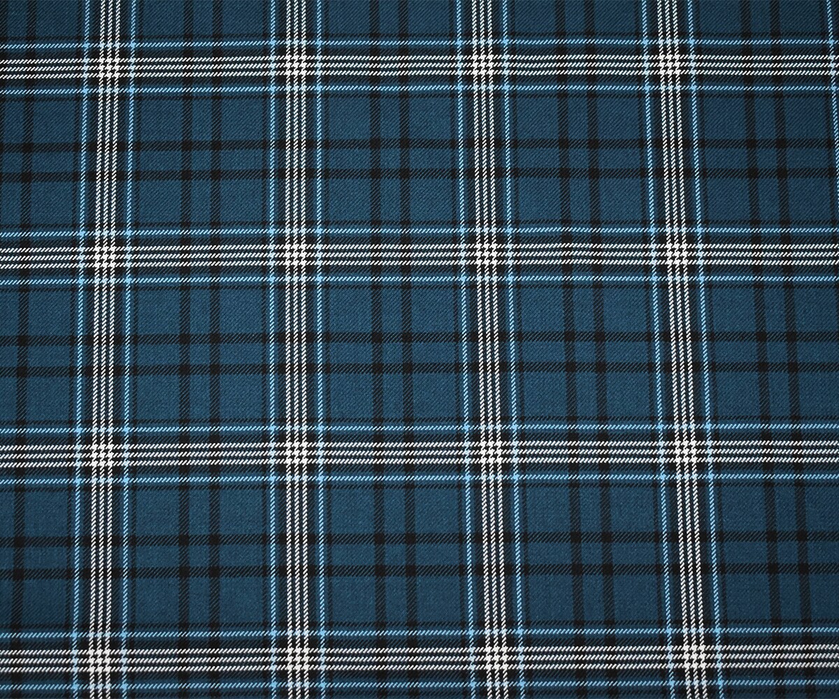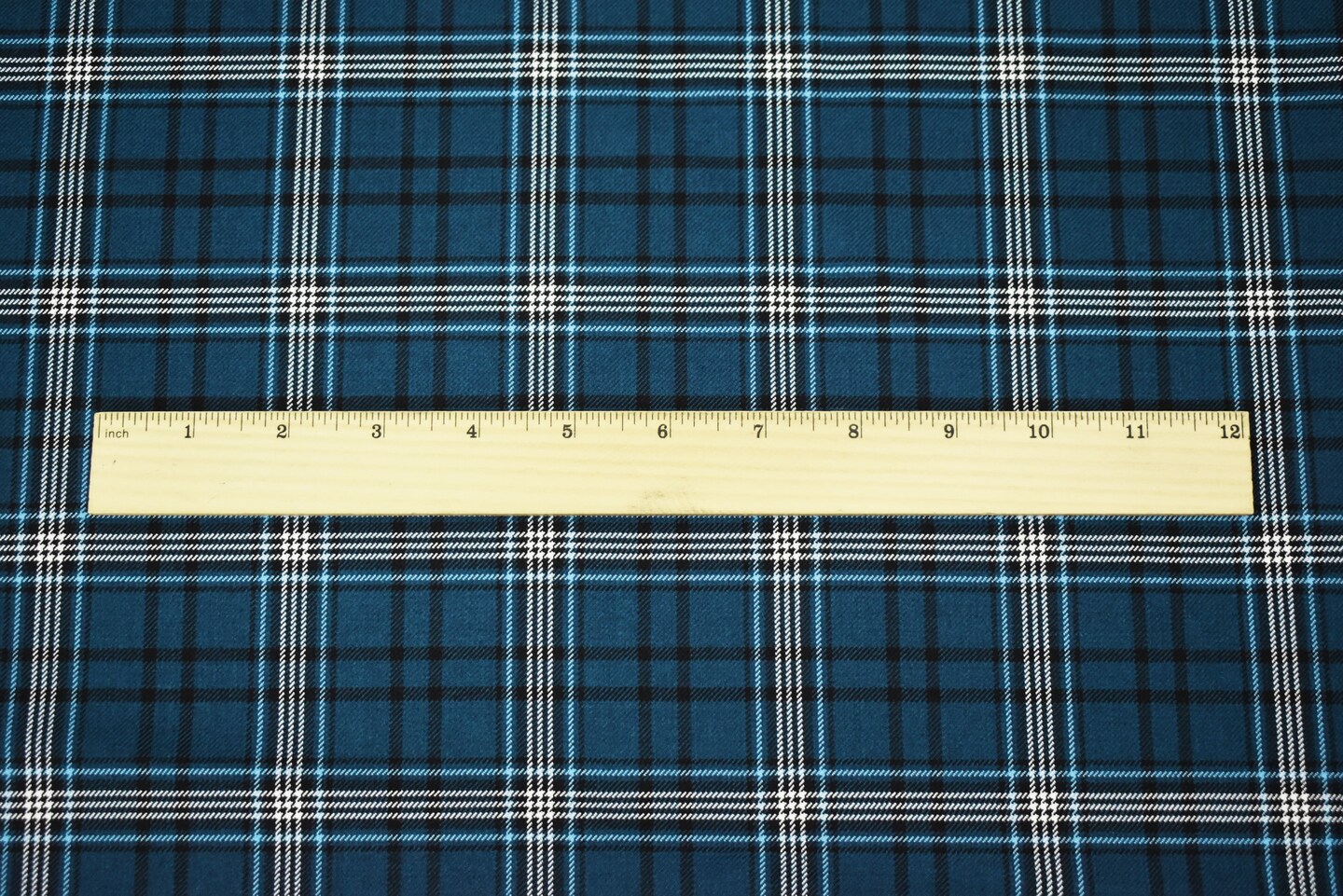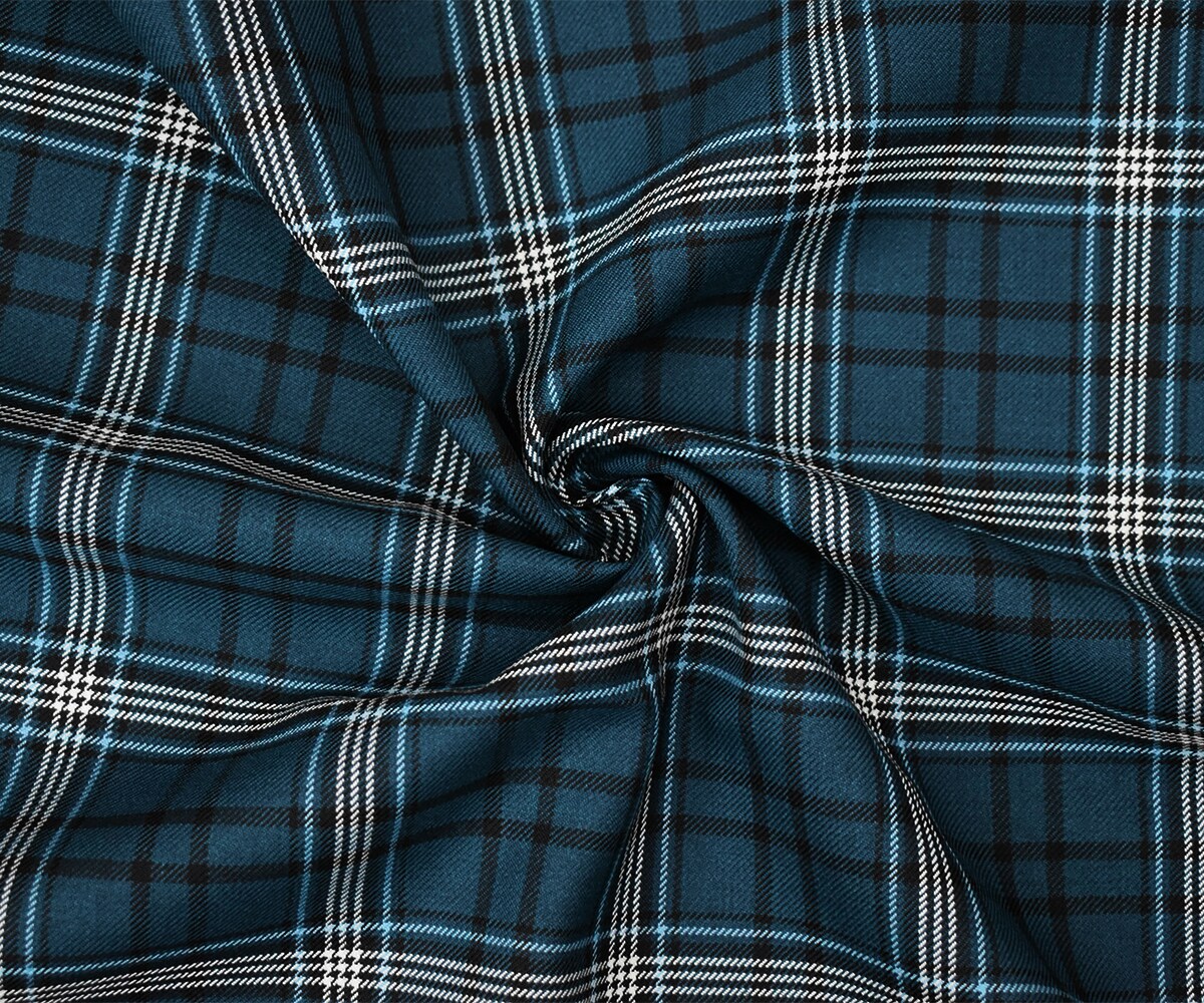 Blue-Black-White Polyester Wool Blend Plaid Twill Suiting Fabric By the Yard