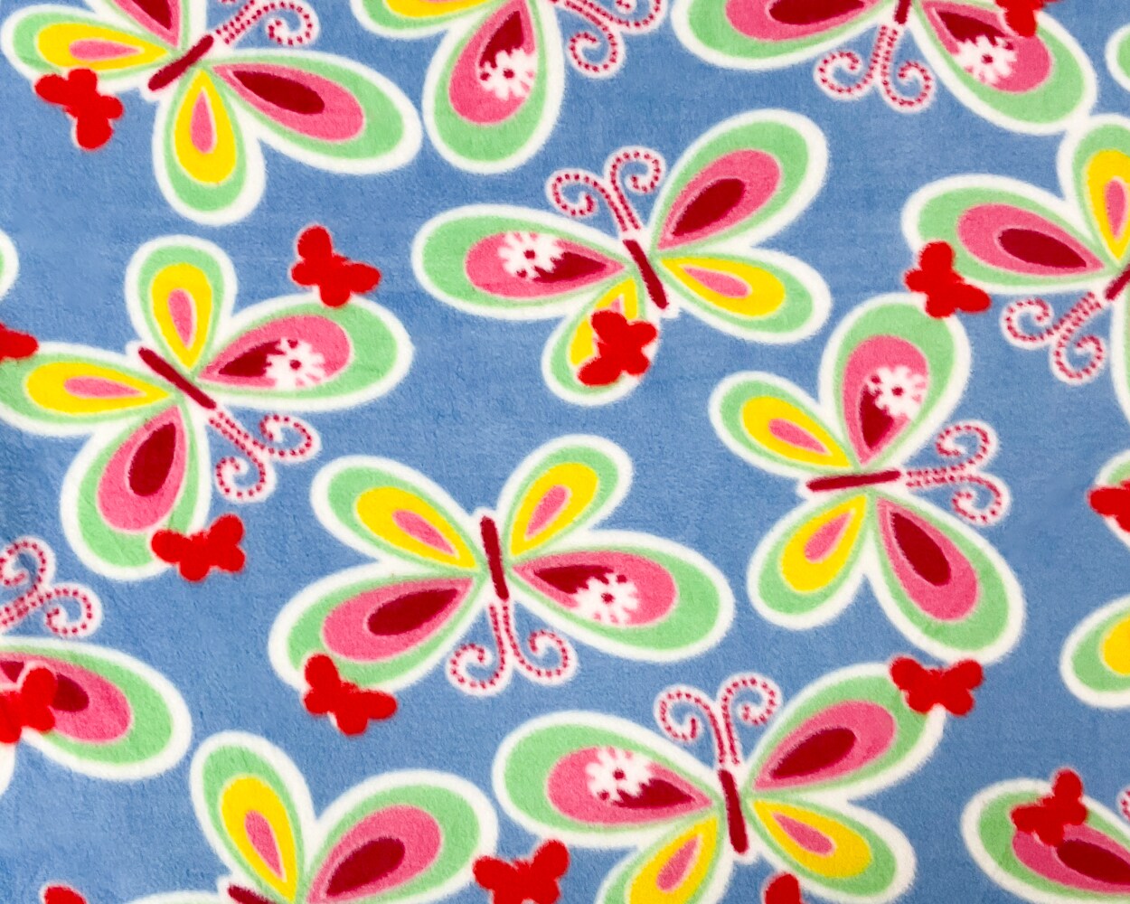 Blue-Green-Multi Polyester Butterfly Printed Polar Fleece Knit Fabric By the Yard