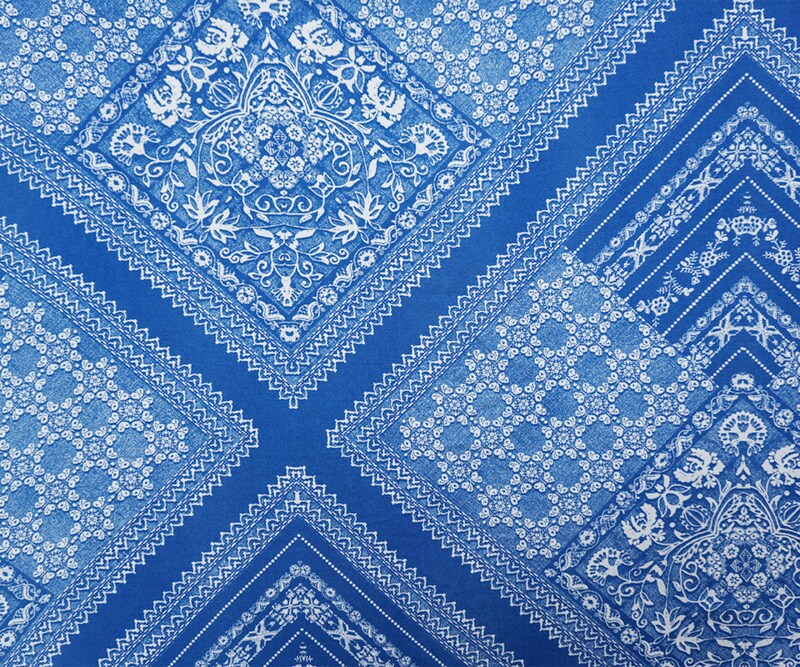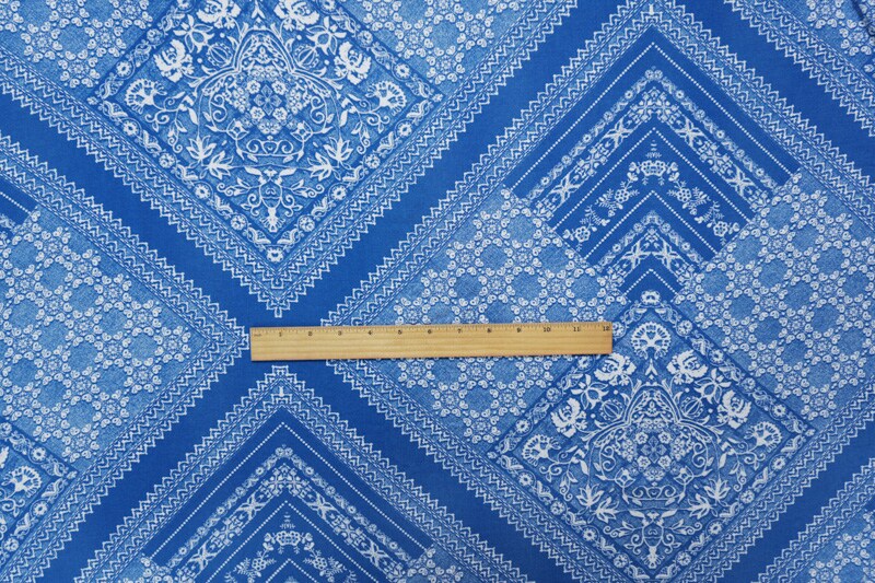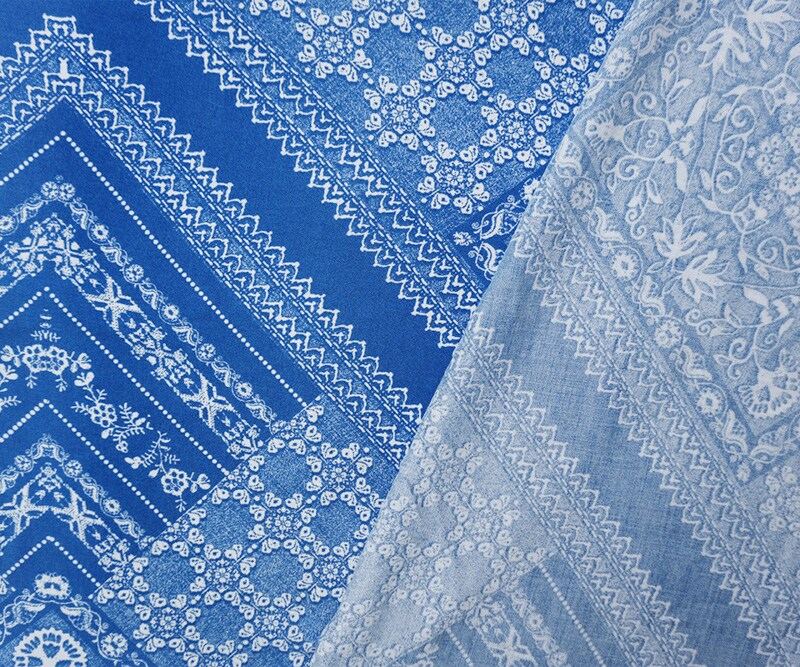 Blue-Ivory Rayon Floral Bandana Printed Challis Woven Fabric By the Yard