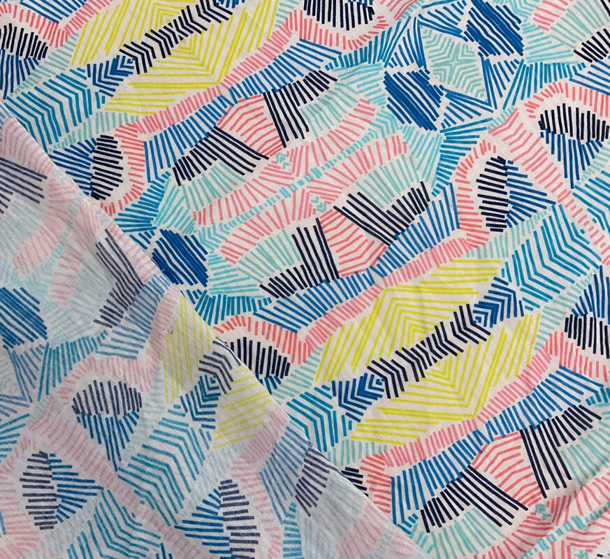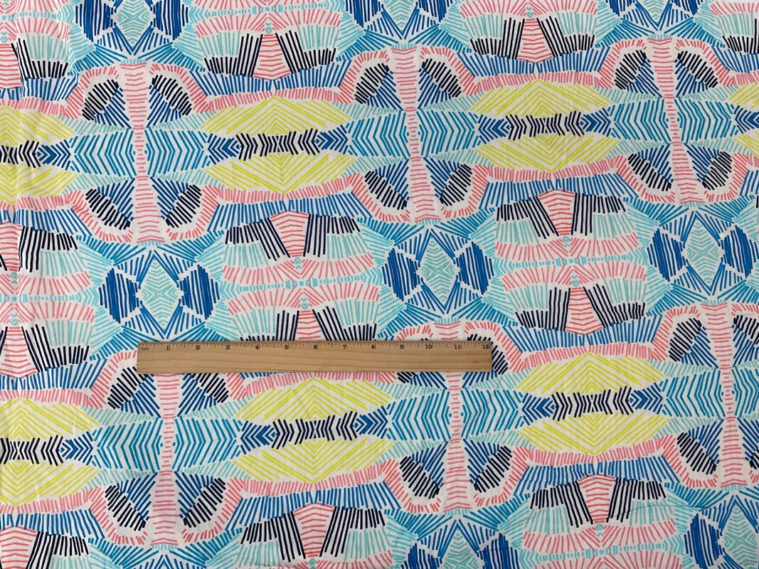 Blue-Ivory-Multi Cotton Abstract Printed Gauze Woven Fabric By the Yard