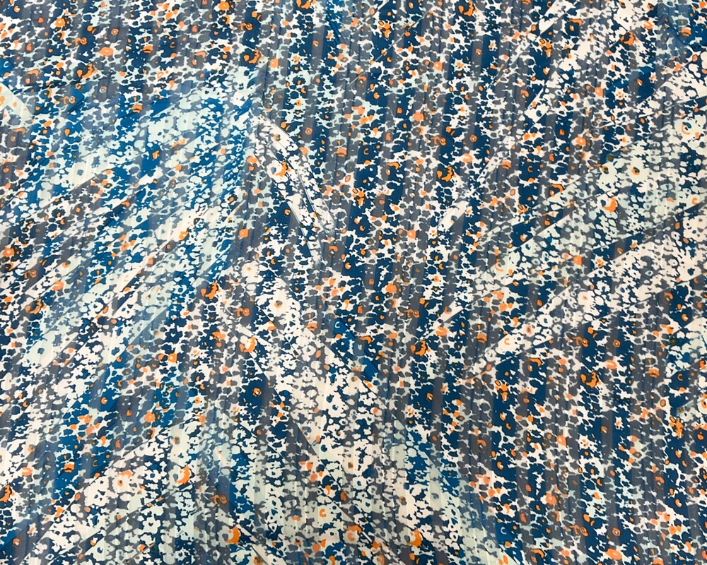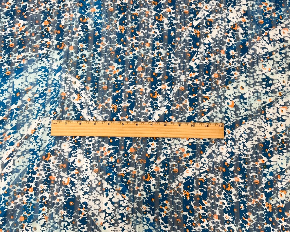 Blue-Multi Poly Floral Printed Satin Stripe Chiffon Woven Fabric By the Yard