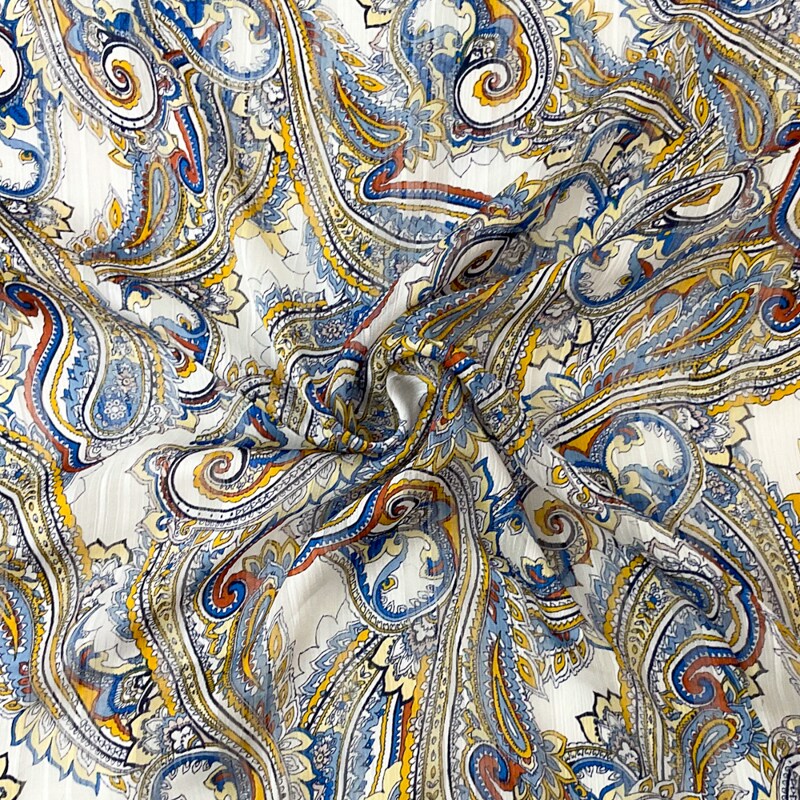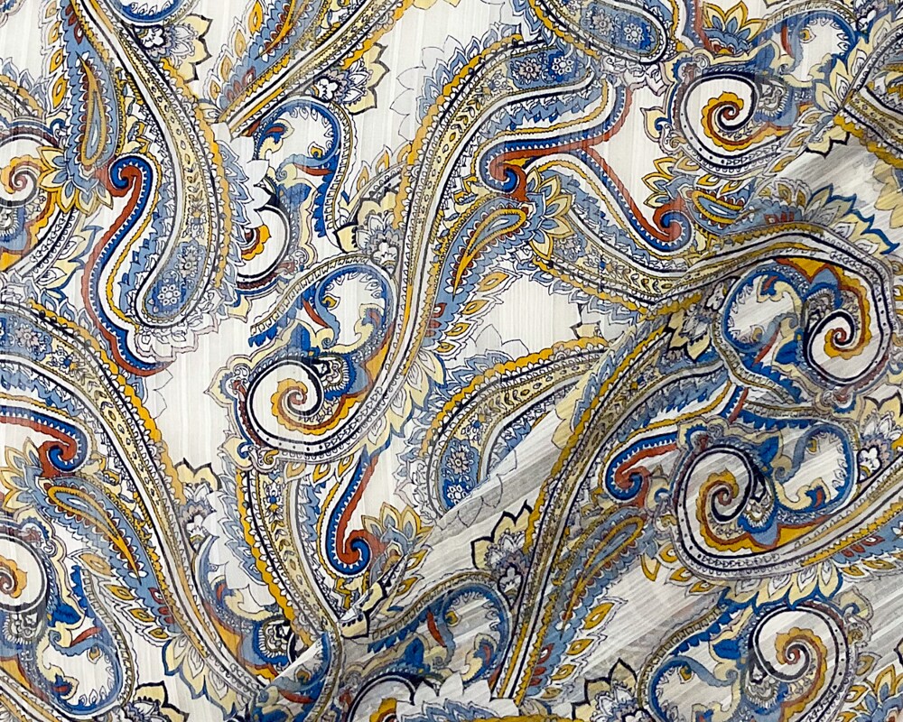 Blue-Multi Poly Paisley Printed Satin Stripe Chiffon Woven Fabric By the Yard