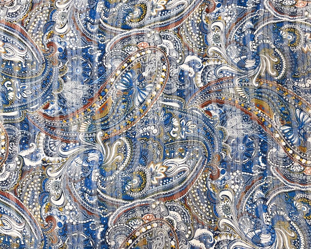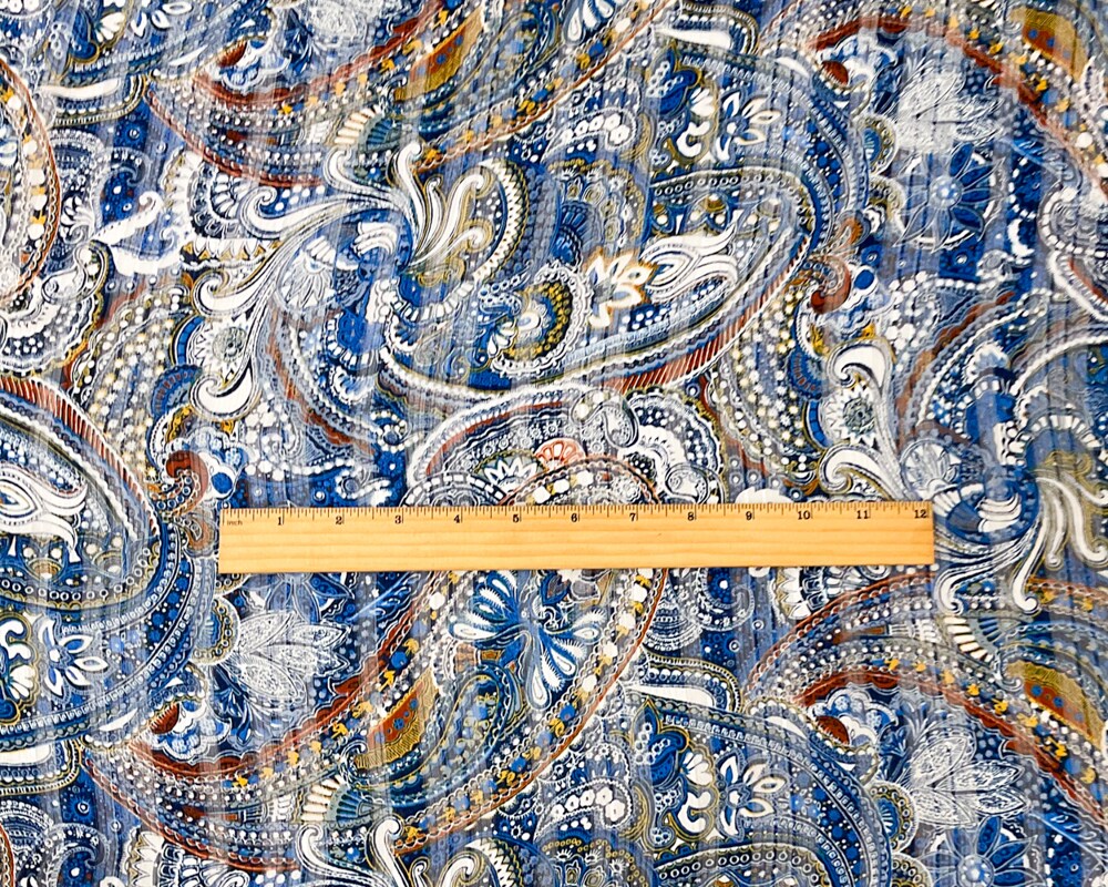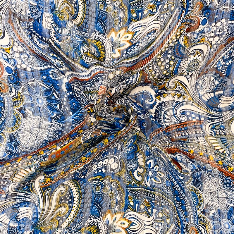 Blue-Multi Poly Paisley Printed Satin Stripe Chiffon Woven Fabric By the Yard