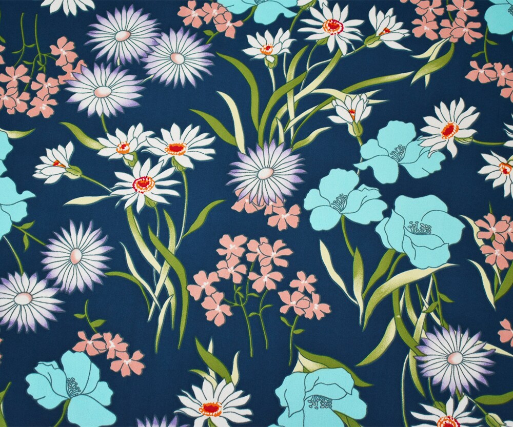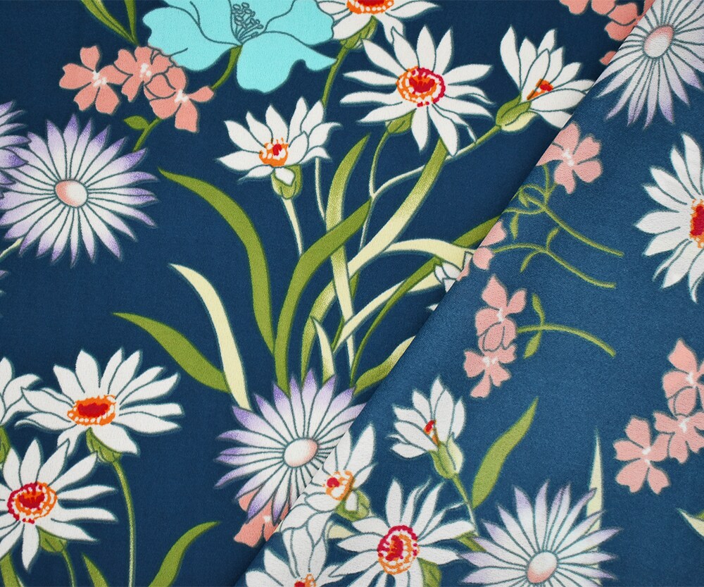 Blue-Pink-Multi Floral Printed Crepe Momie Georgette Woven Fabric By the Yard