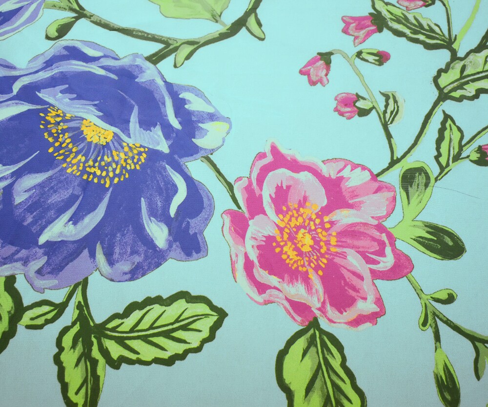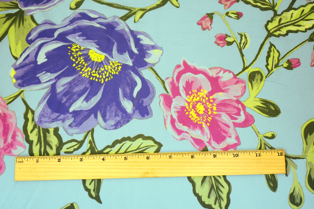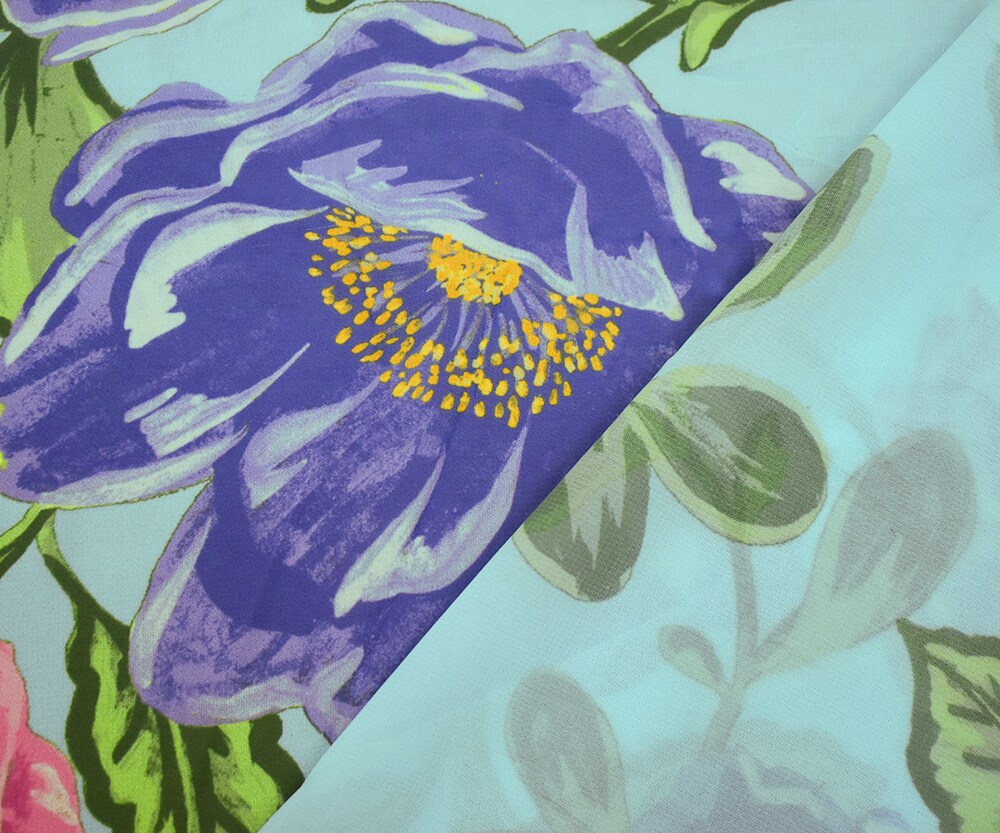Blue-Pink-Multi Floral Printed Poly Chiffon Woven Fabric By the Yard