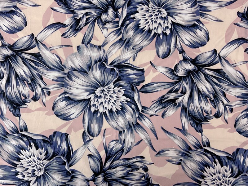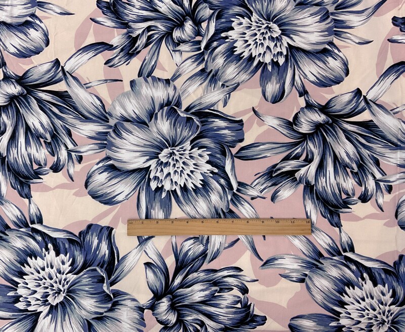 Blue-Pink-Multi Rayon Floral Printed Challis Woven Fabric By the Yard