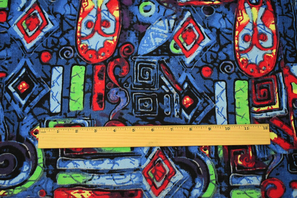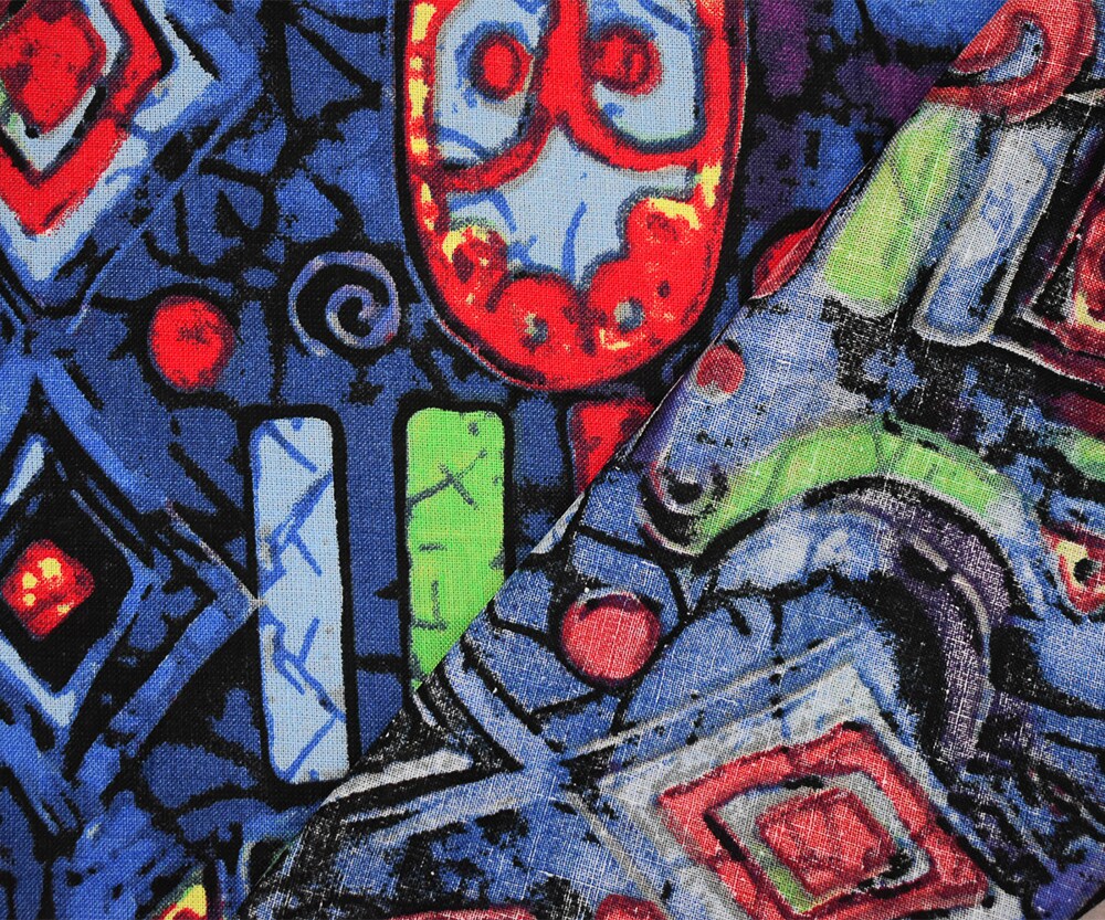 Blue-Red-Multi Abstract Geometry Art Pattern Printed Linen Woven Fabric By the Yard