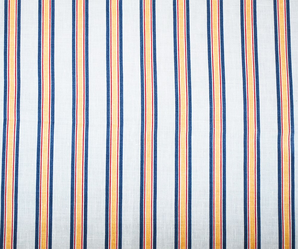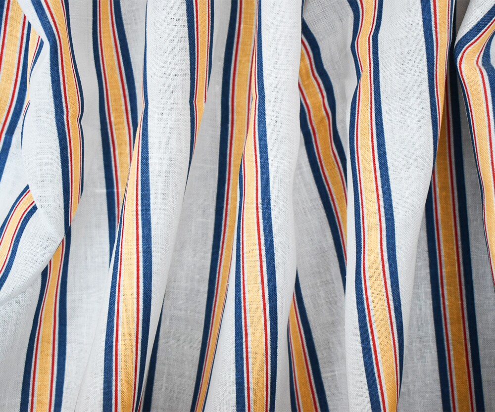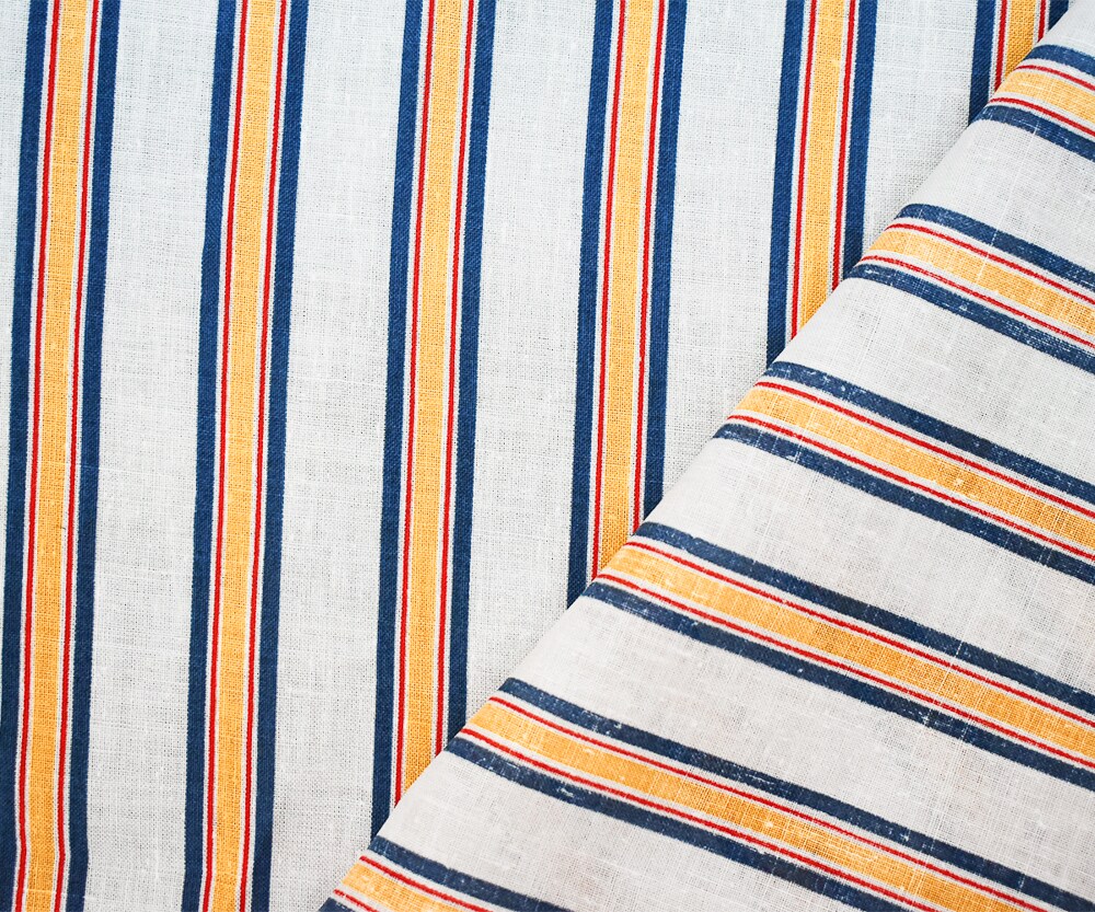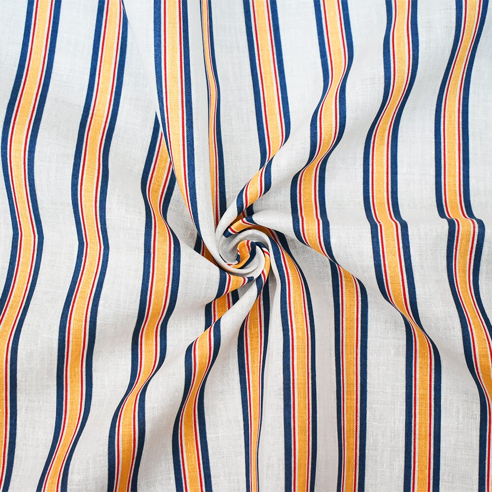 Blue-Red-Yellow Stripe Printed Linen Woven Fabric By the Yard