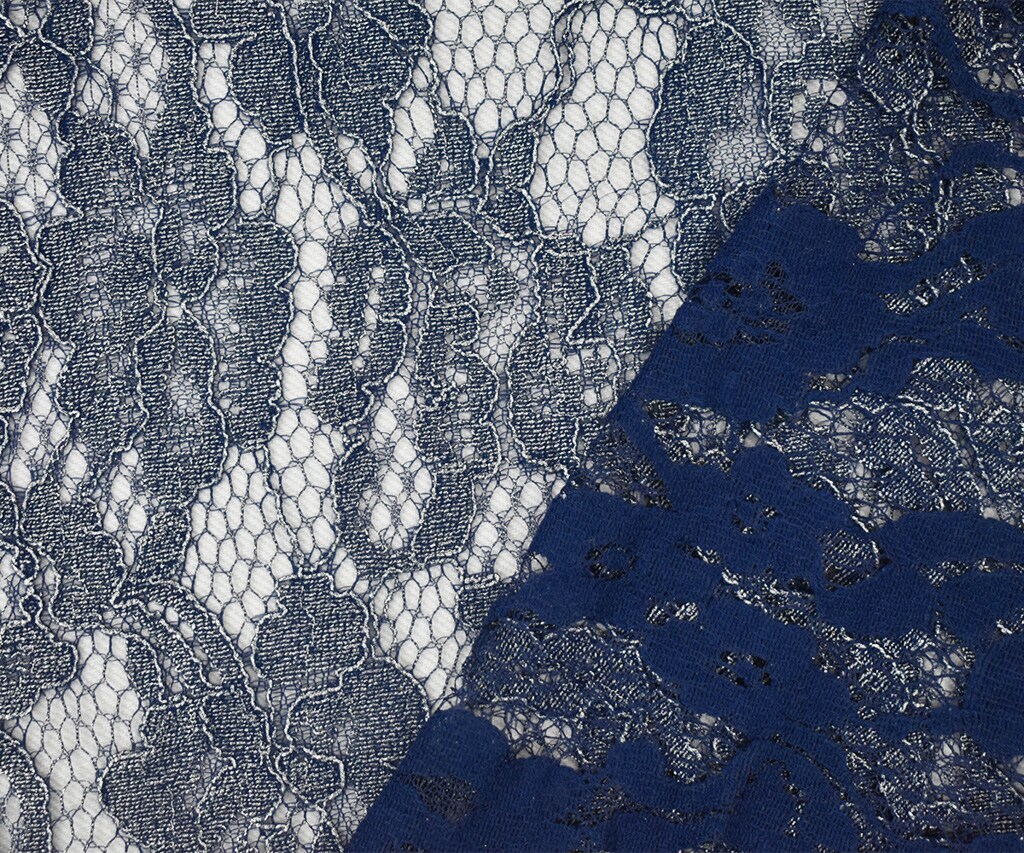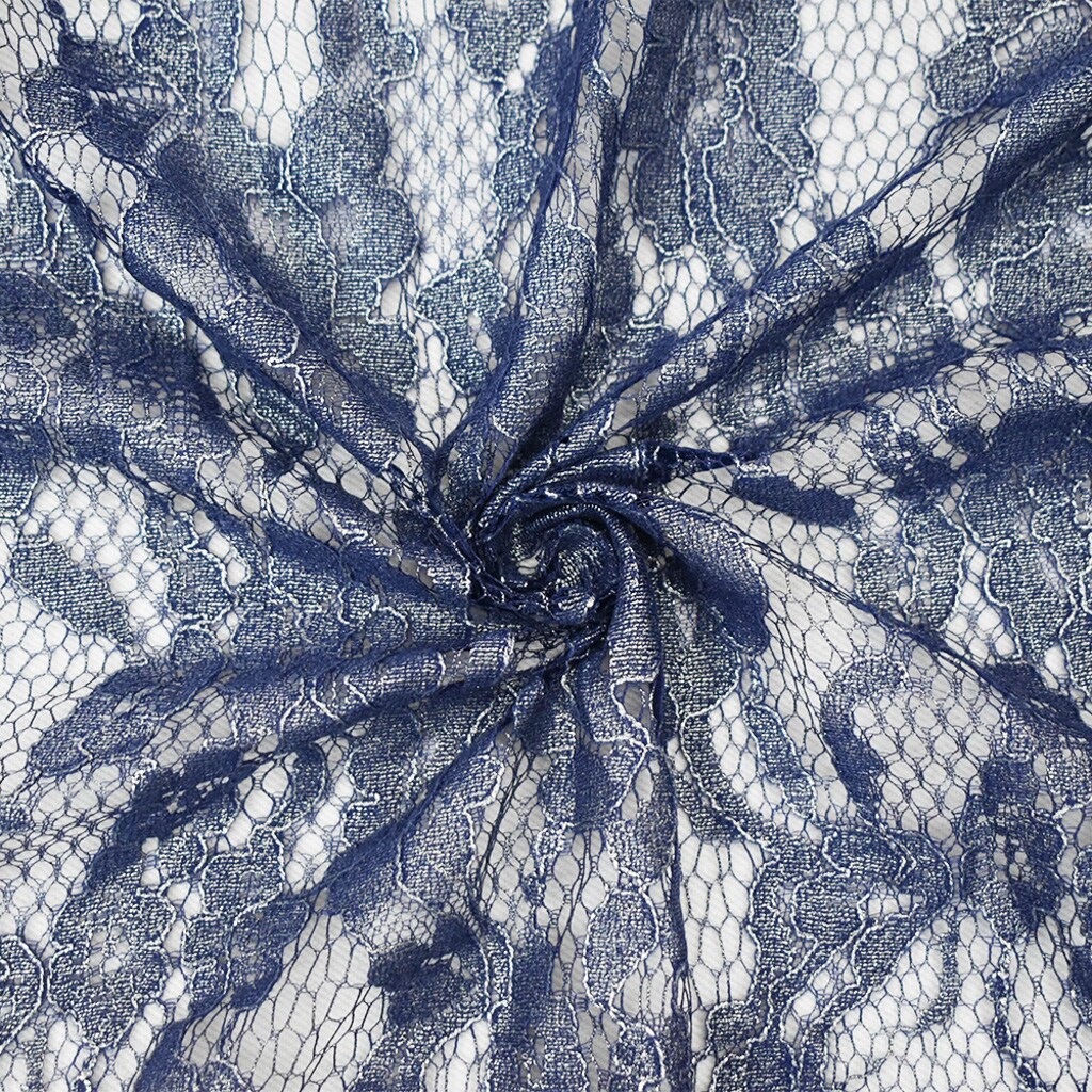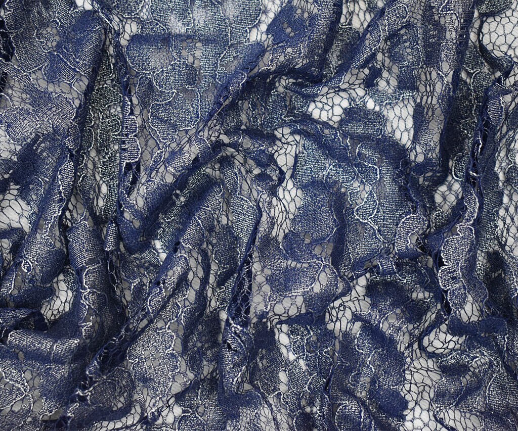 Blue-Silver Poly Nylon Floral Lace Mesh Knit Fabric By the Yard