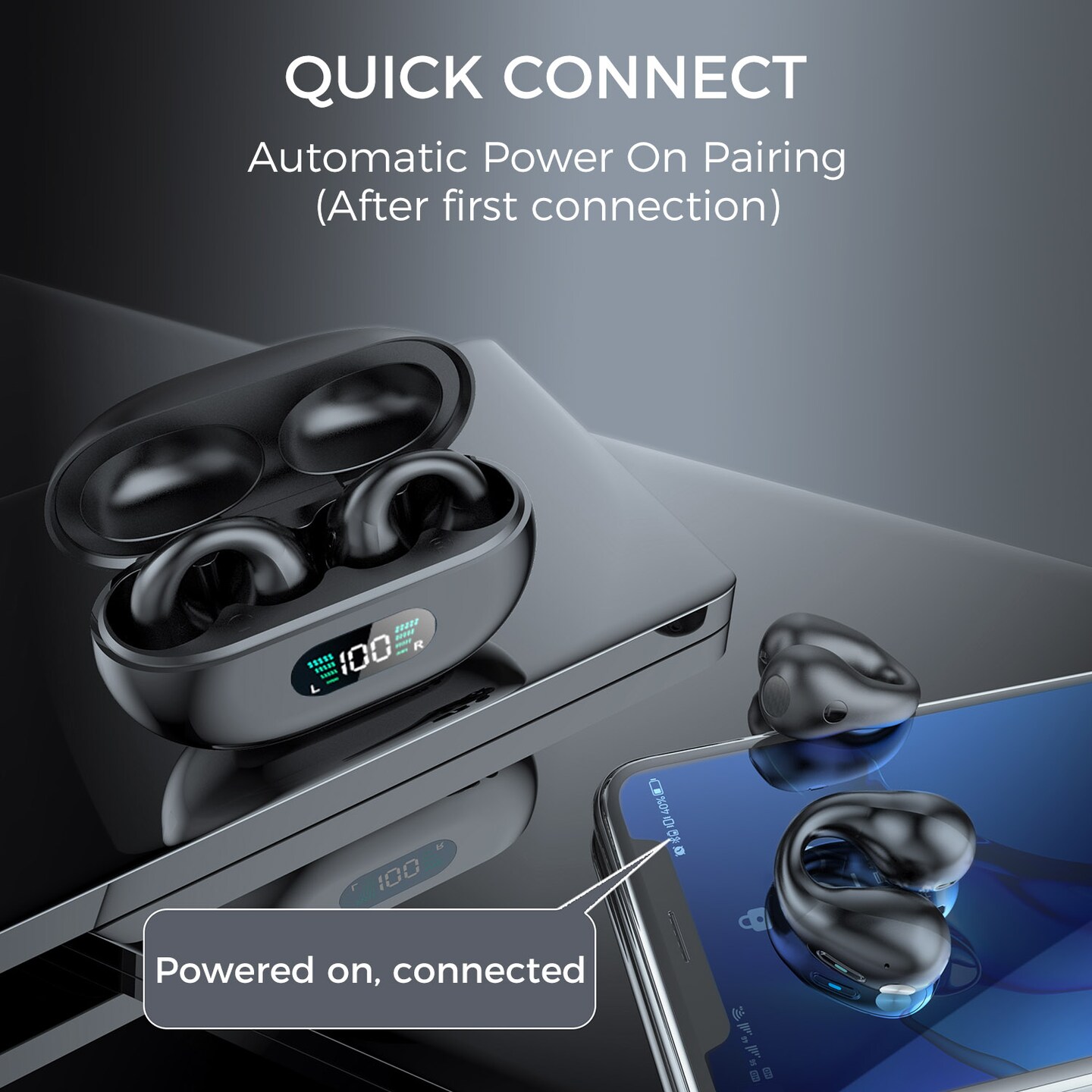 Bluetooth Open Ear Clip Earbuds, Bone Conduction, Up to 18 Hours Playtime, Lightweight