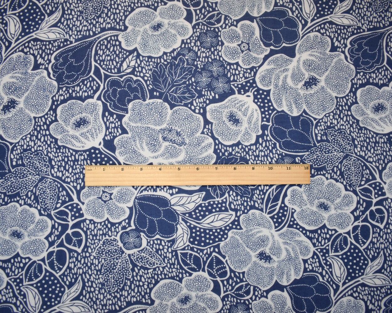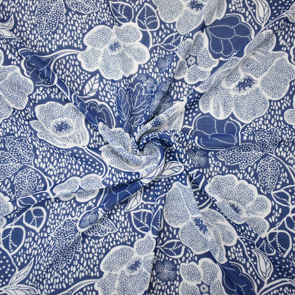 Blue-White Poly Floral Printed Pebble Chiffon Woven Fabric By the Yard