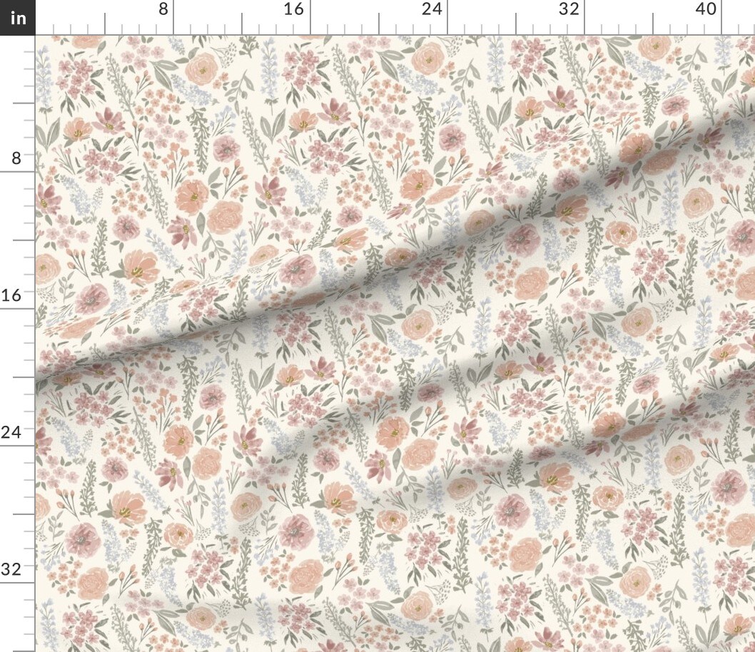 Blush Floral Muted Colors Sage Green Wildflower Meadow Feminine Custom Printed Fabric by Spoonflower Various Fabrics by the Yard or Fat Quarter
