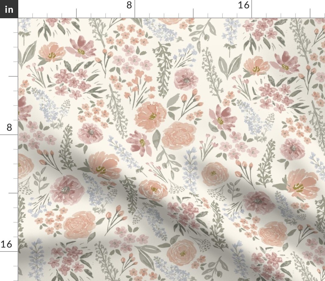 Blush Floral Muted Colors Sage Green Wildflower Meadow Feminine Custom Printed Fabric by Spoonflower Various Fabrics by the Yard or Fat Quarter