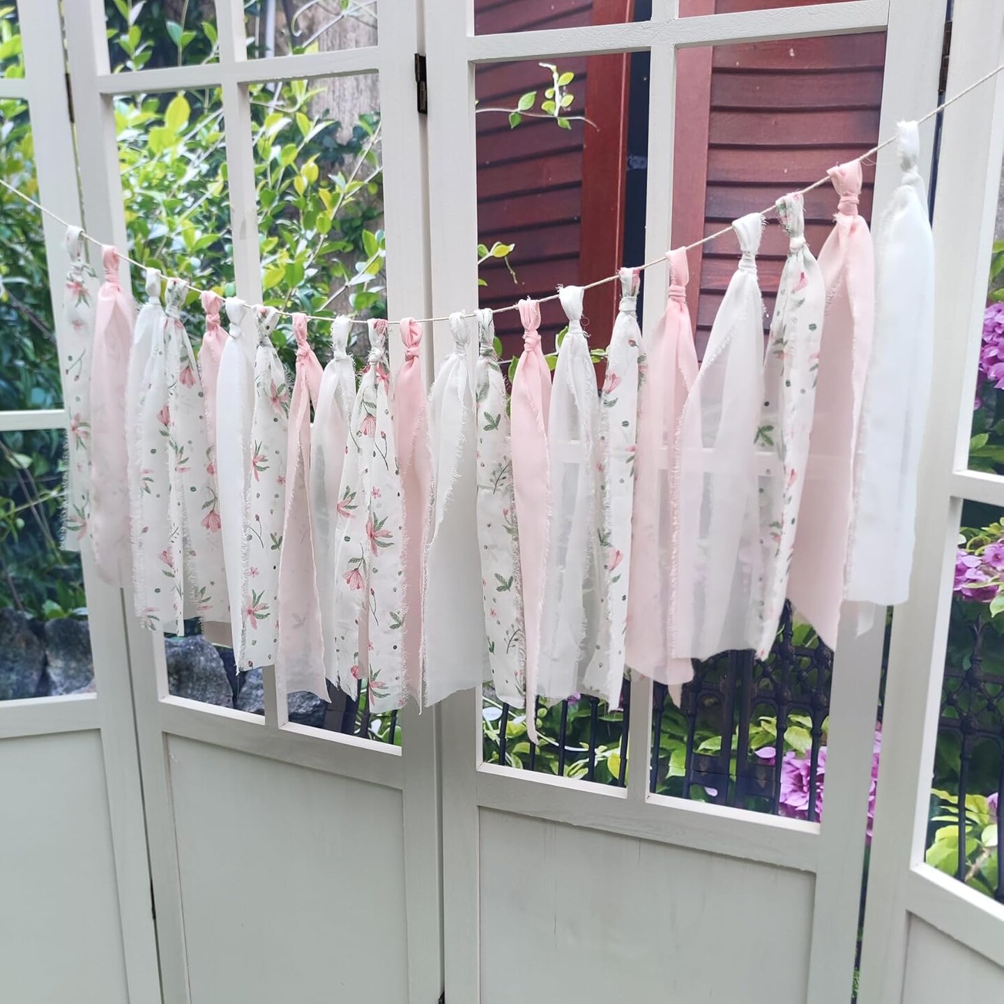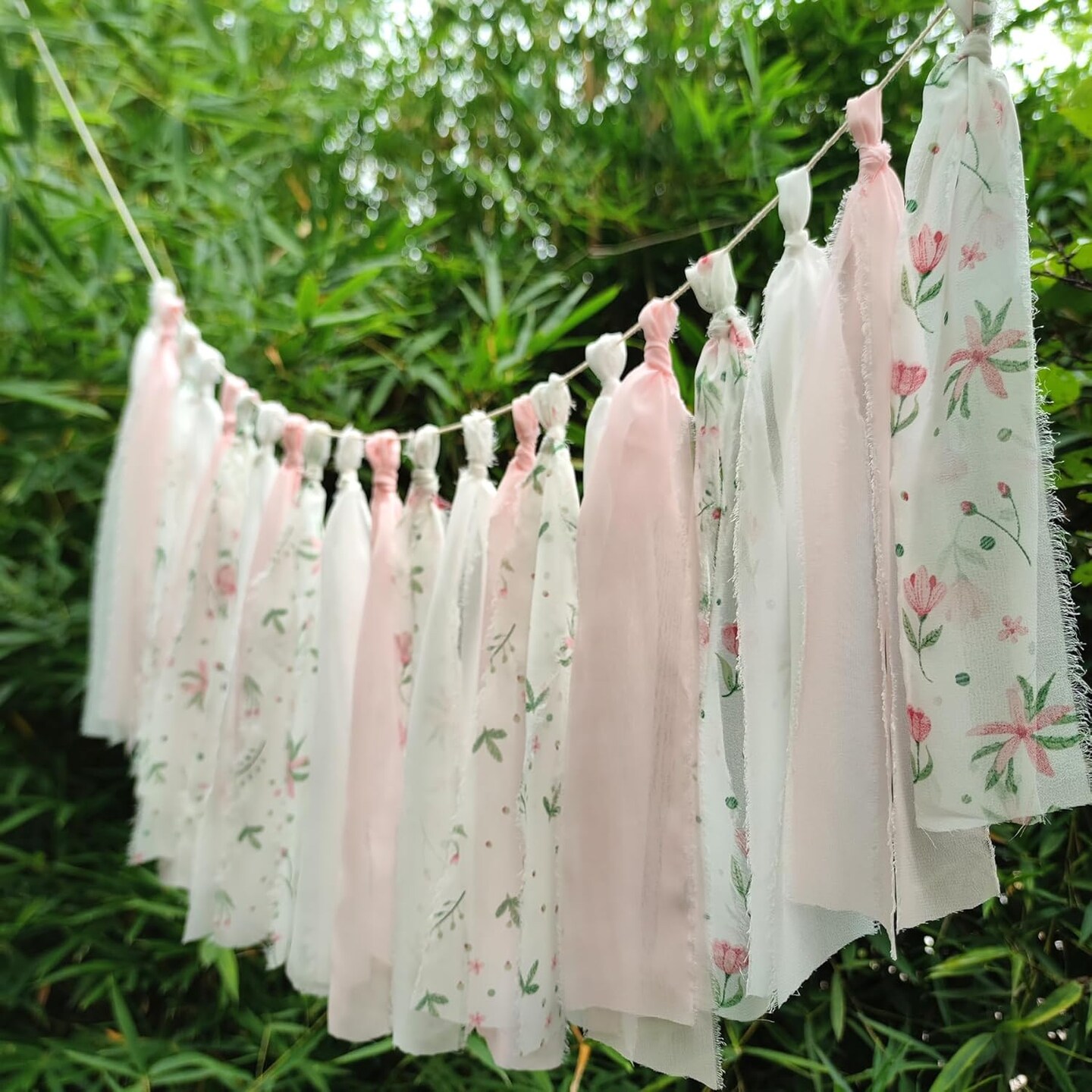 Blush Floral Tassel Garland – 50" x 14" Pink Hanging Décor for Girls & Women, Tea Party, Bedroom, Nursery, Birthday, Wedding & Baby Shower Backdrop