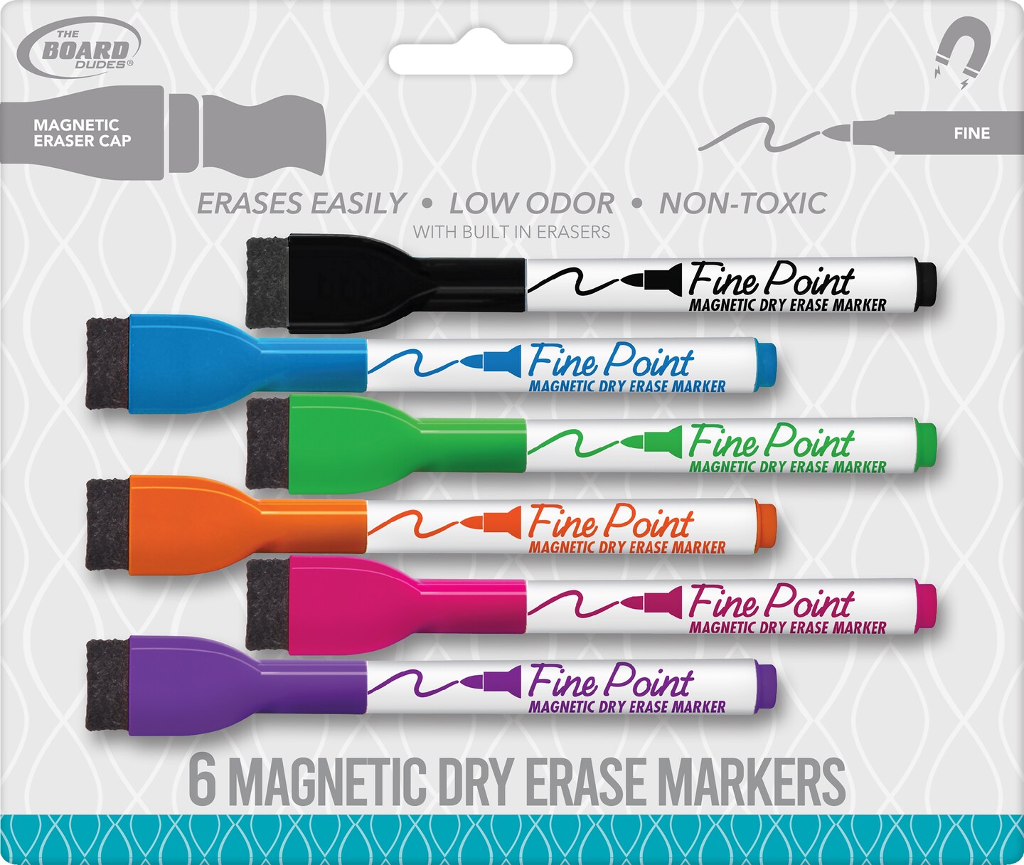 Board Dudes Magnetic Fine Tip Dry Erase Markers 6/Pkg-Assorted With Eraser