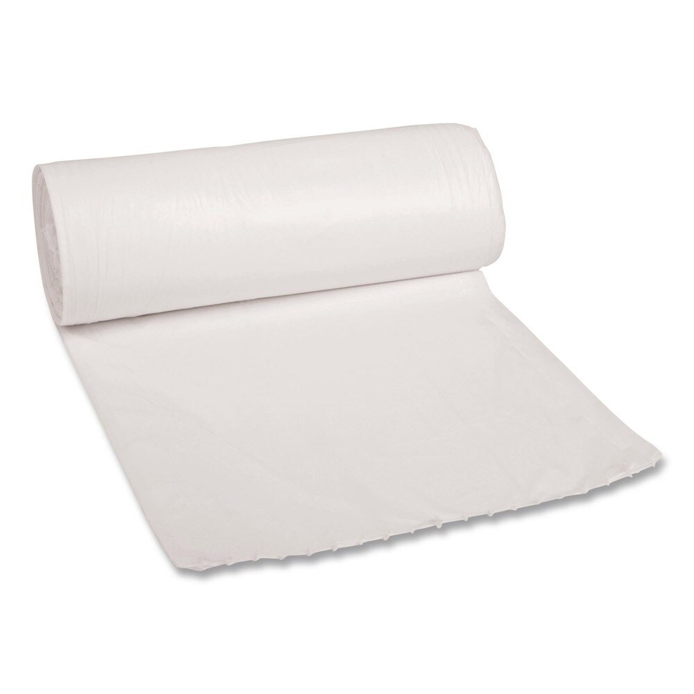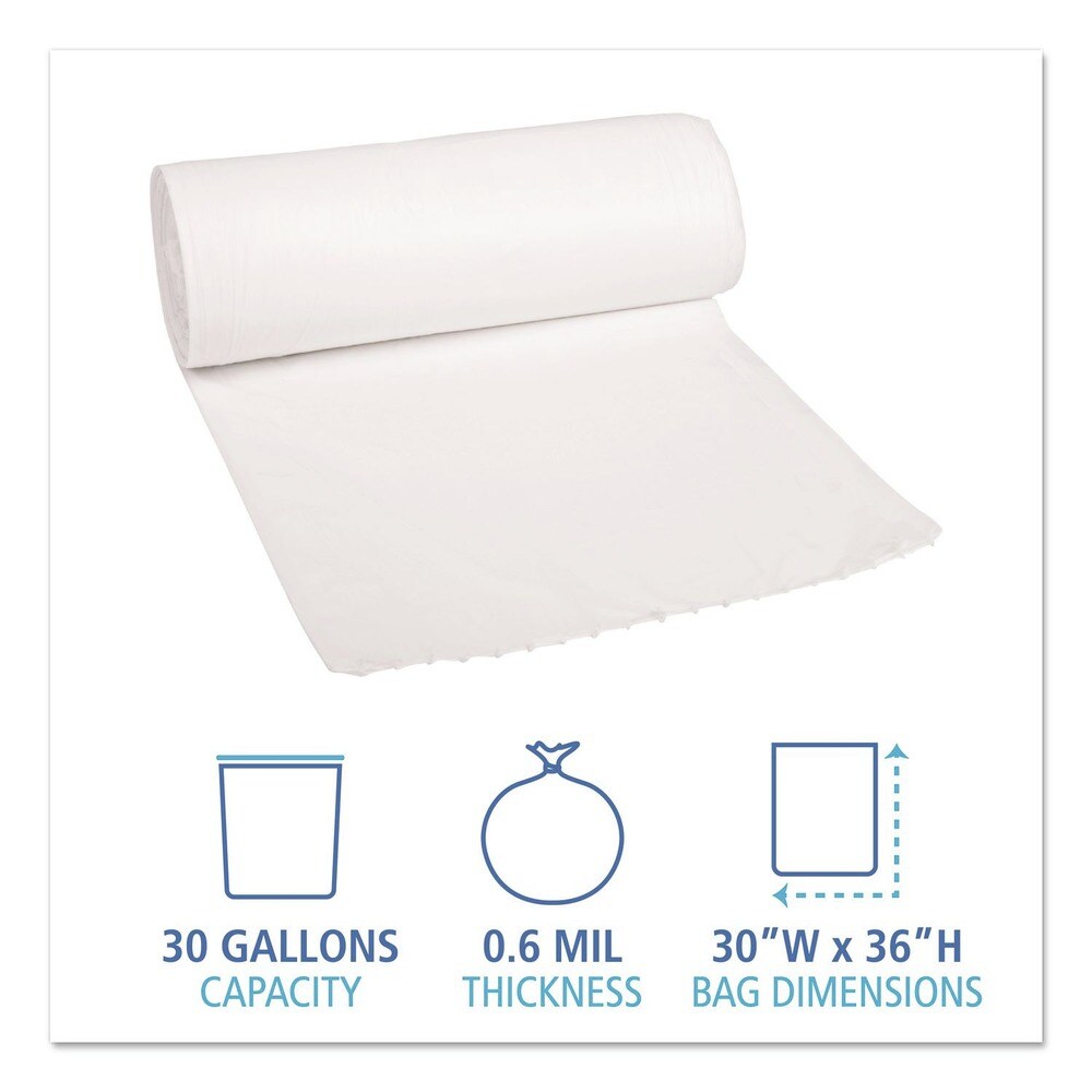 Boardwalk 30 Gallon 0.6 mil 30 in. x 36 in. Perforated Roll Low-Density Waste Can Liners - White (25 Bags/Roll, 8 Rolls/Carton)
