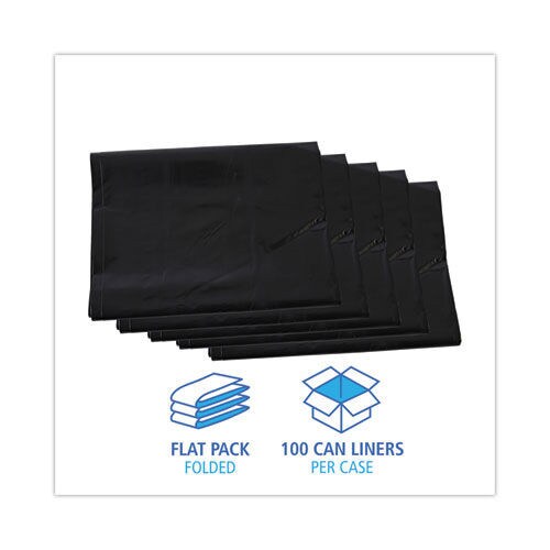 Boardwalk 60 Gallon 1.7 mil 38 in. x 58 in. Flat Pack Linear Low Density Industrial Can Liners - Black (100/Carton)