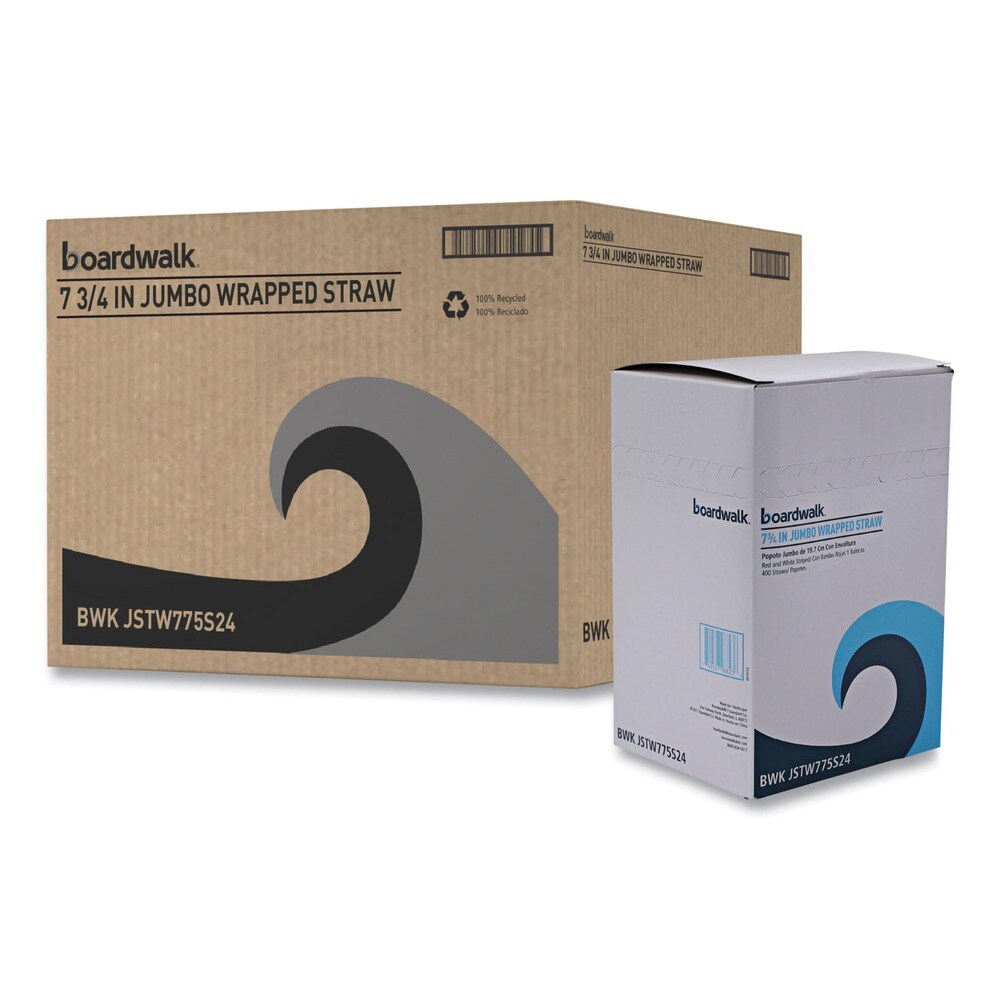 Boardwalk 7.75 in. Wrapped Jumbo Plastic Straws - White/Red Stripe (400/Pack, 25 Packs/Carton)