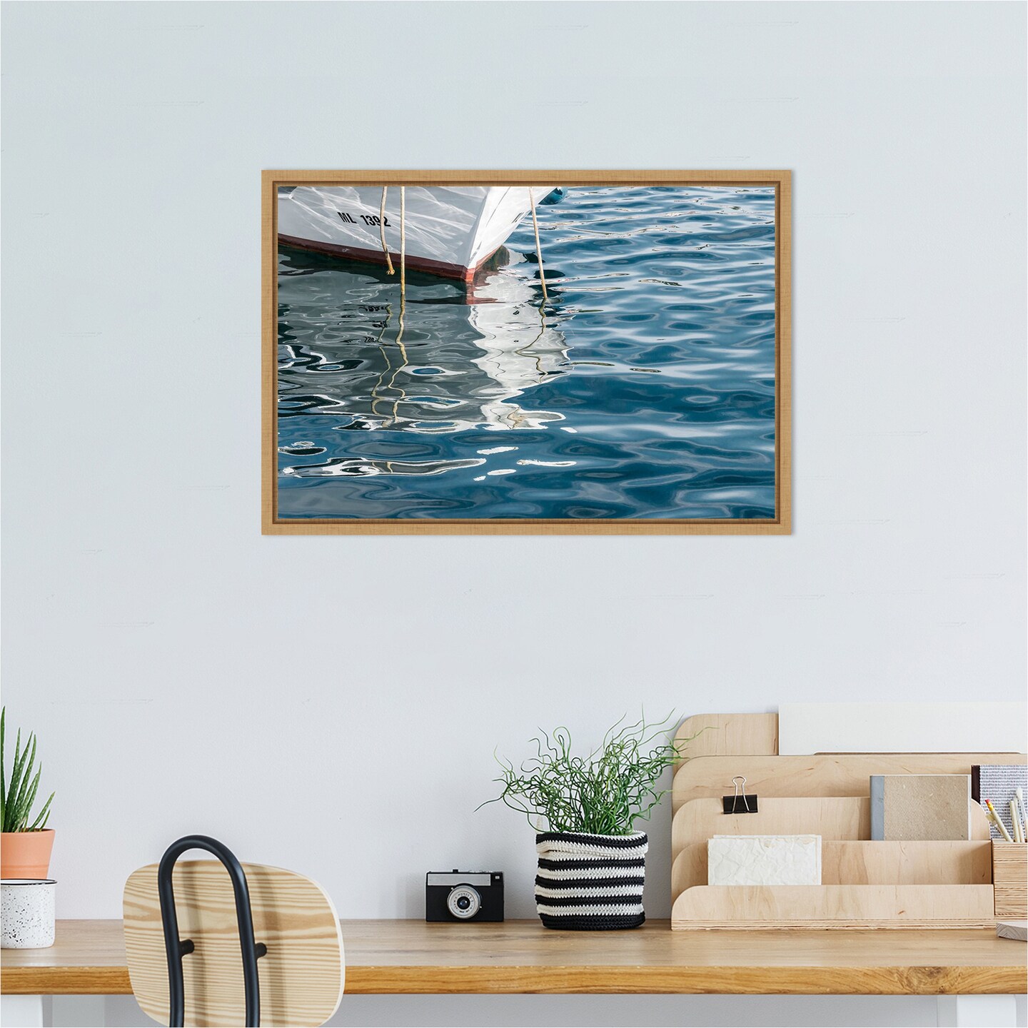 Boat Reflections by Richard Silver Framed Canvas Wall Art