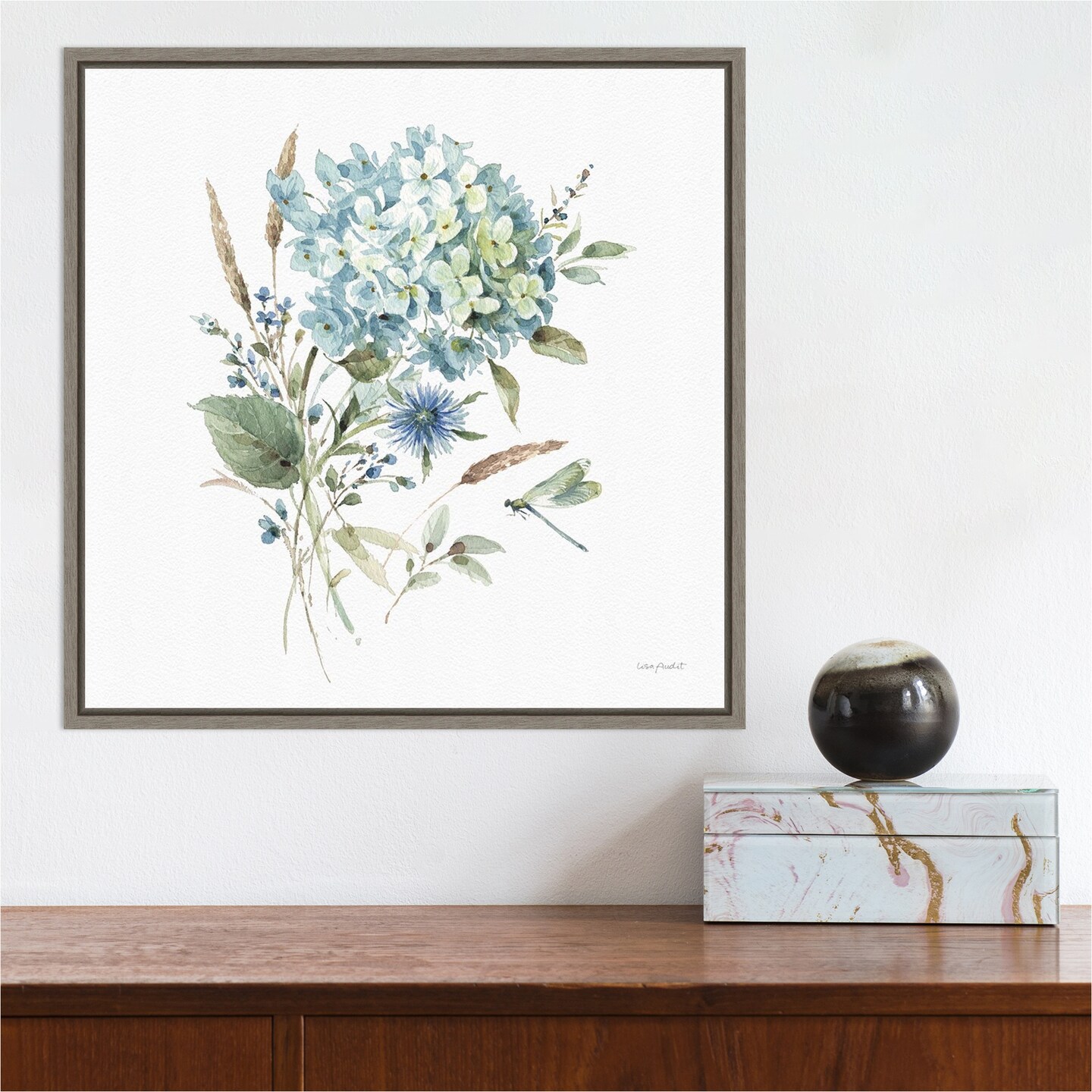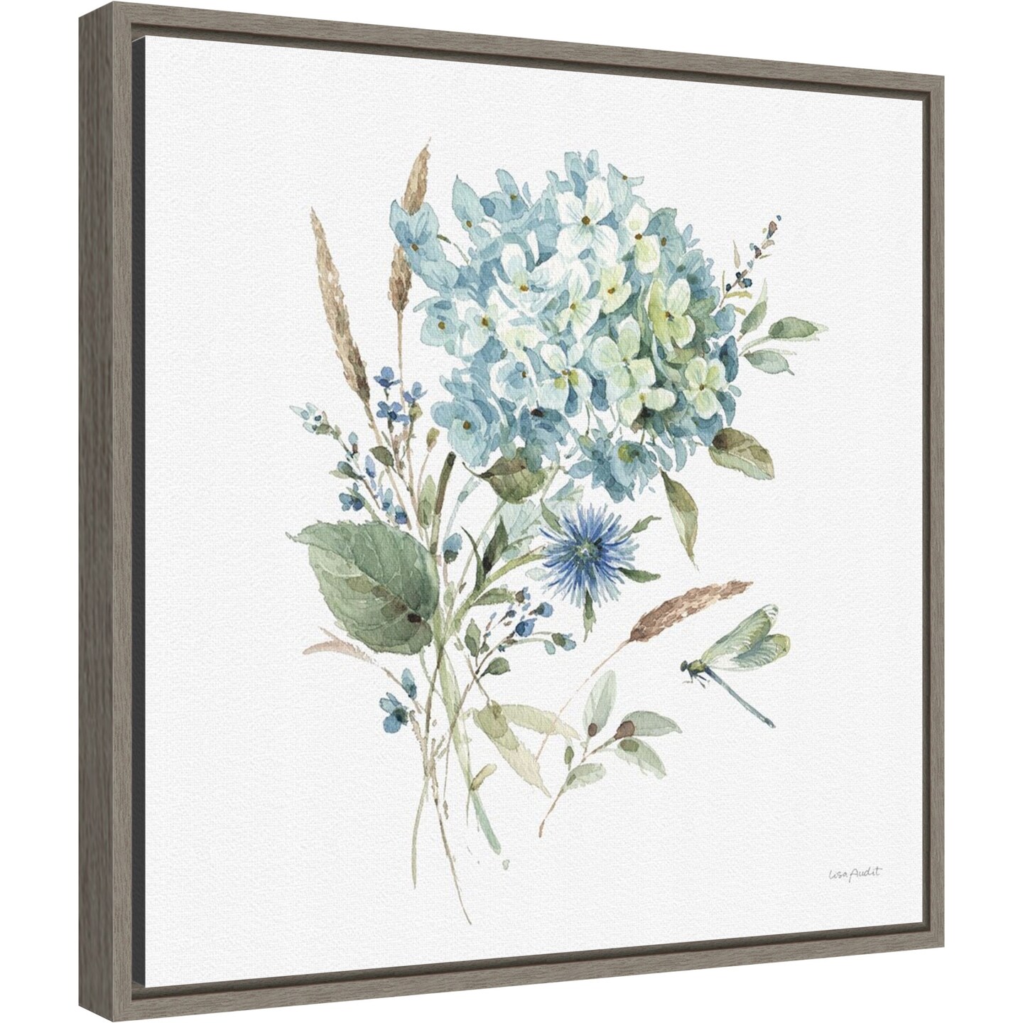 Bohemian Blue 03A (Floral Bouquet) by Lisa Audit 16-in. W x 16-in. H. Canvas Wall Art Print Framed in Grey