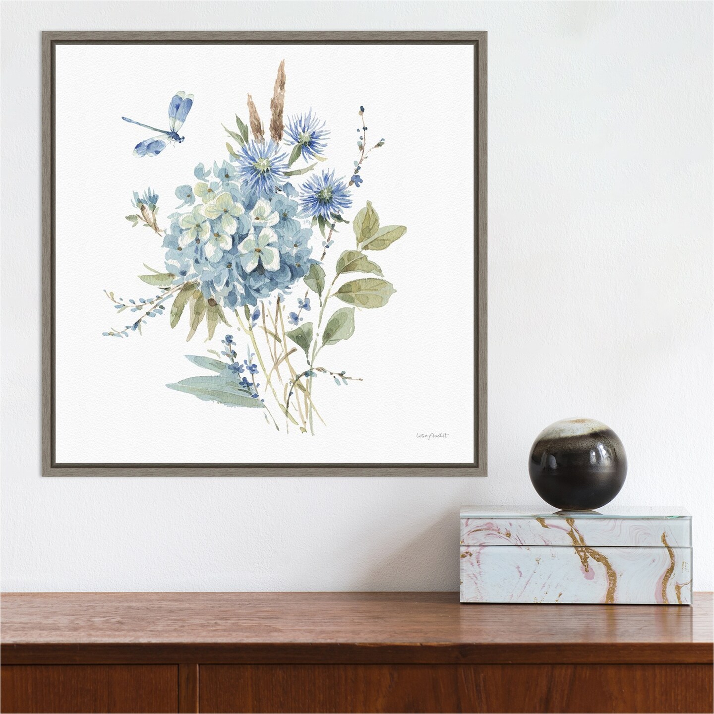 Bohemian Blue 04A (Floral Bouquet) by Lisa Audit 16-in. W x 16-in. H. Canvas Wall Art Print Framed in Grey