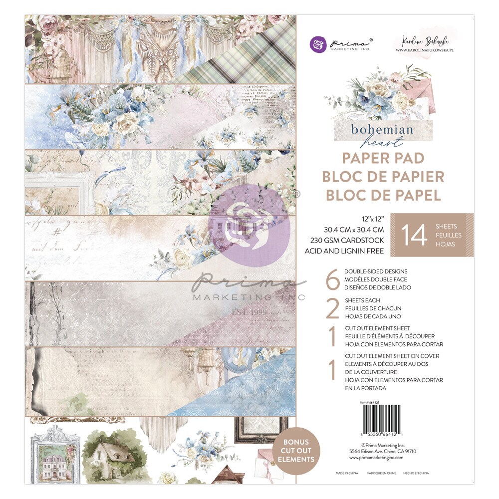 Bohemian Heart 12x12 Paper Pad - 14 sheets w foil- 6 double sided designs x 2 sheets each + 1 cut-out sheet + 1 cut-out sheet on cover paper pad