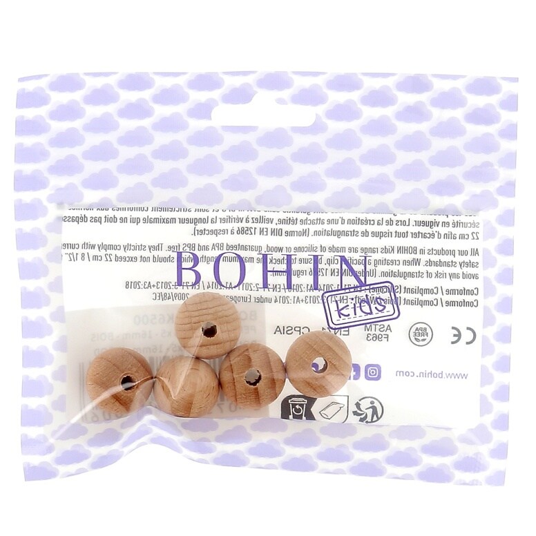 Bohin Round Wood Beads 5/Pkg-BEECH WOOD 16MM