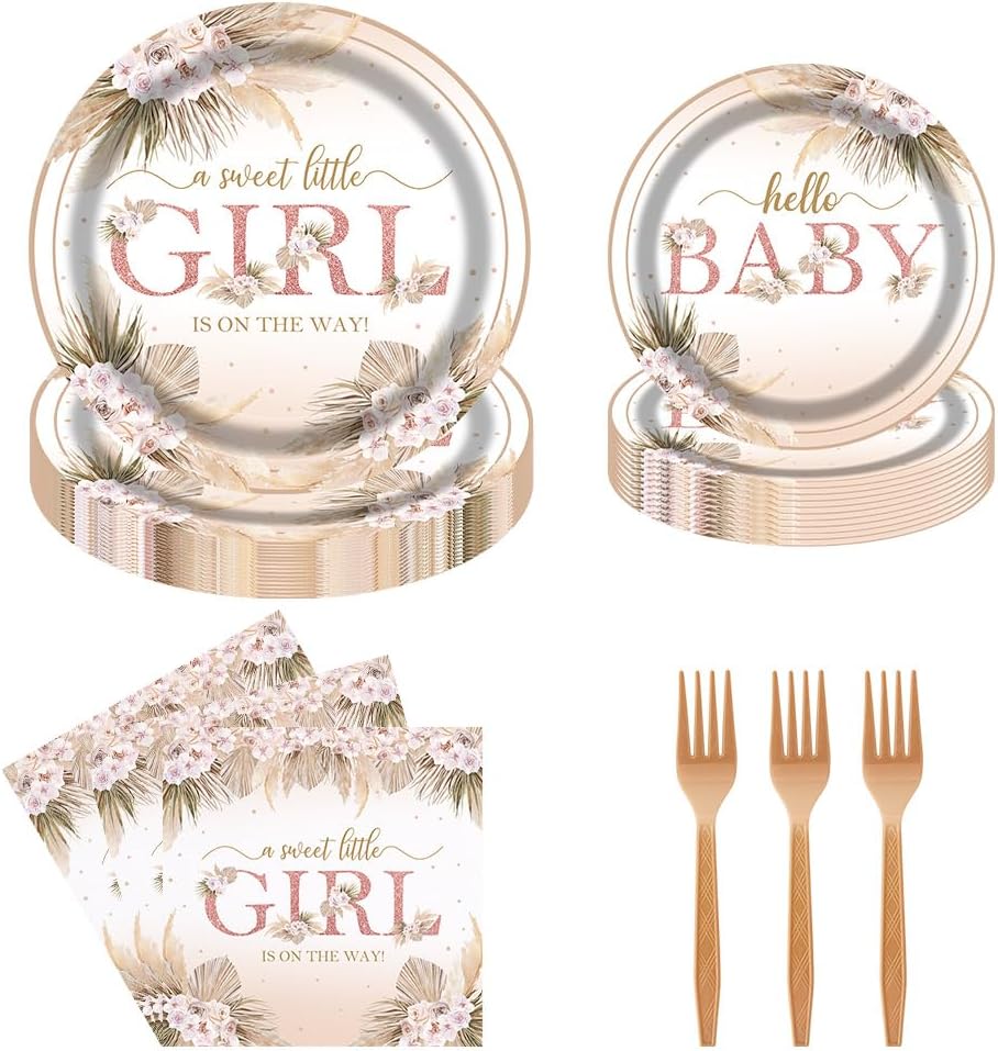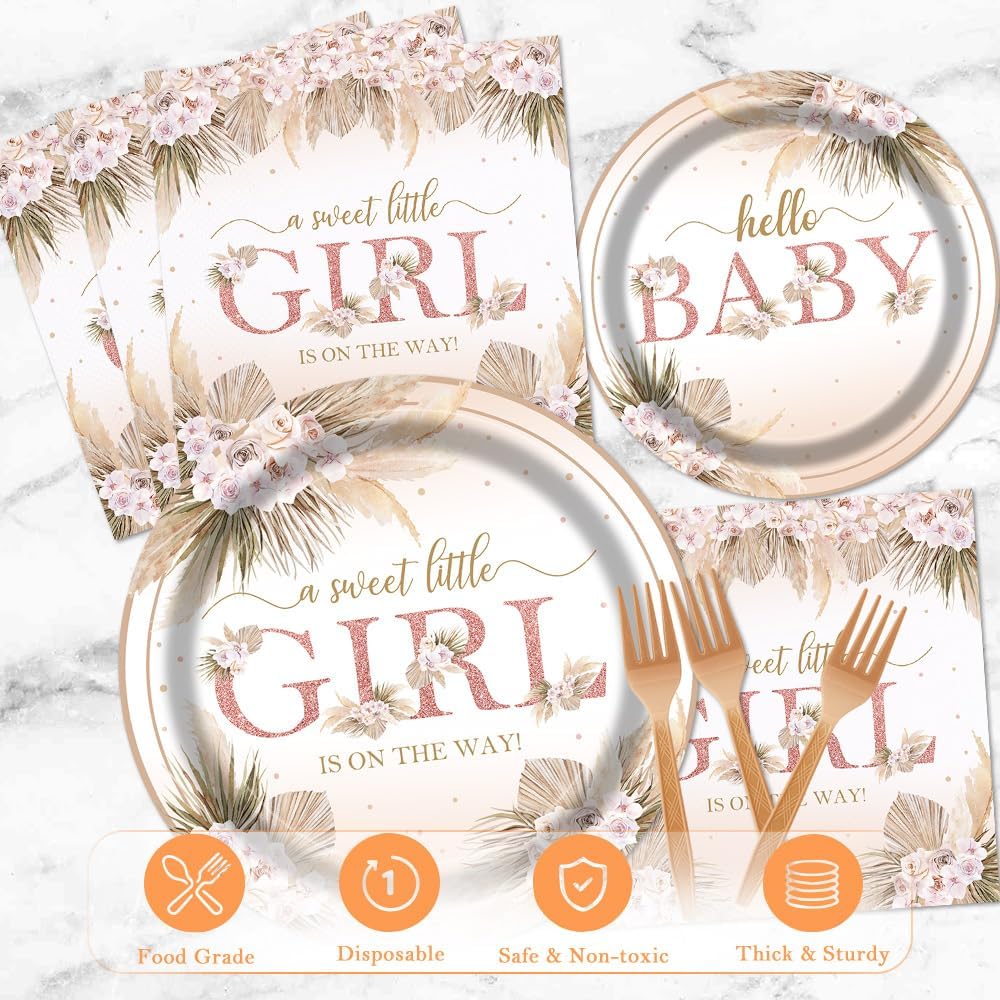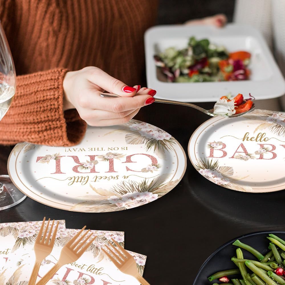Boho Baby Shower Party Tableware Set 96 Pcs