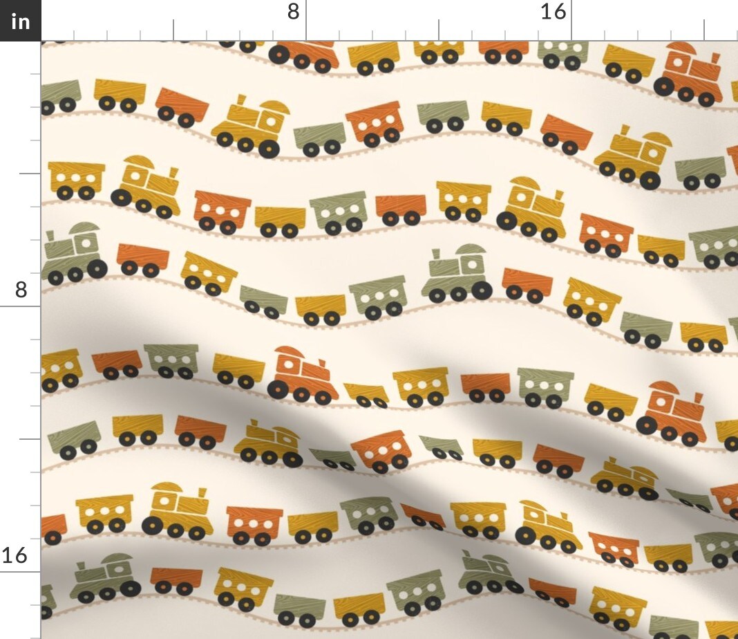 Boho Baby Trains Retro Warm Colors Nursery Toy Train Kids Toddlers Custom Printed Fabric by Spoonflower Various Fabrics by the Yard or Fat Quarter