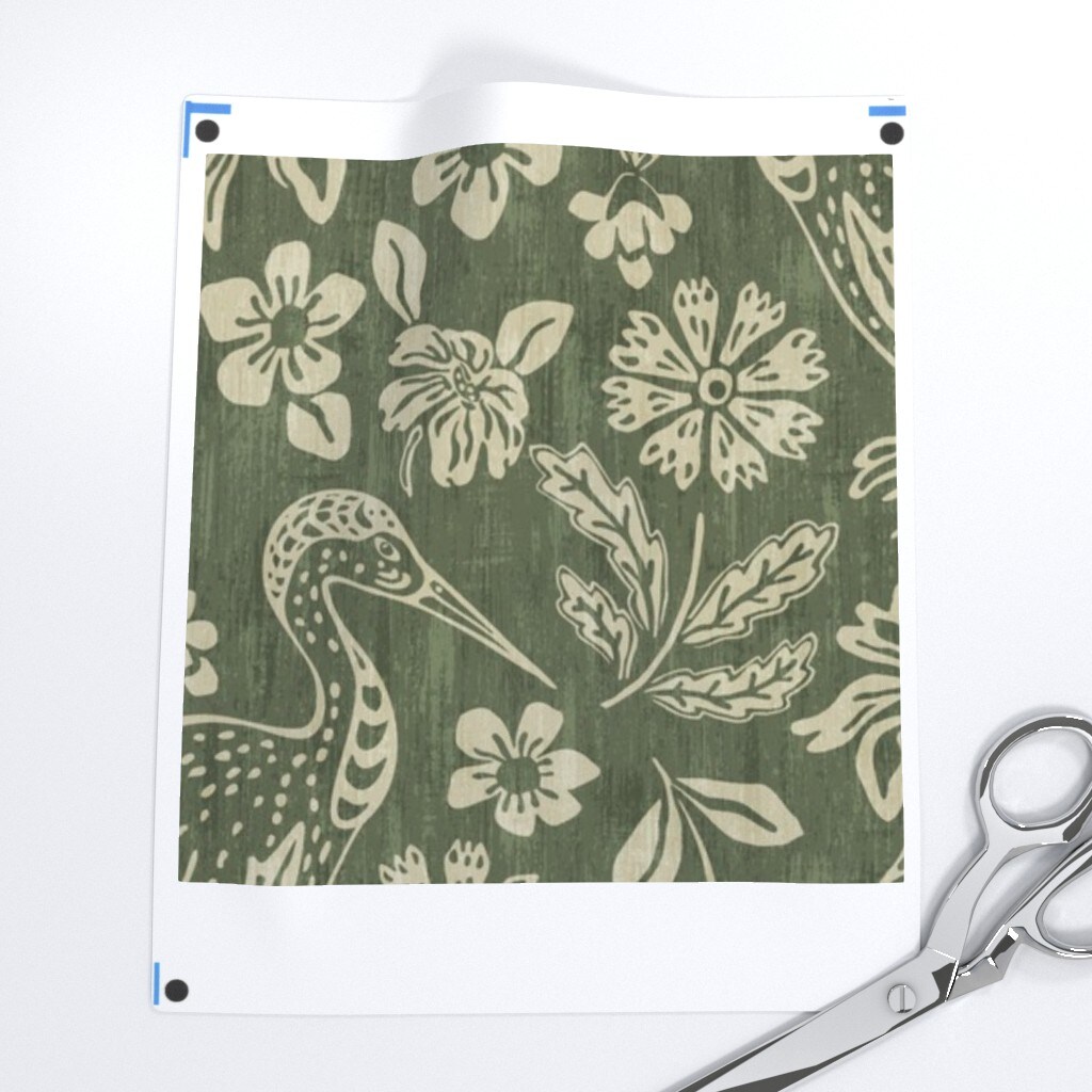 Boho Botanical Dark Sage Green Hand Drawn Traditional Earthy Bohemian Farmhouse Distressed Transitional Custom Printed Fabric by Spoonflower Various Fabrics by the Yard or Fat Quarter