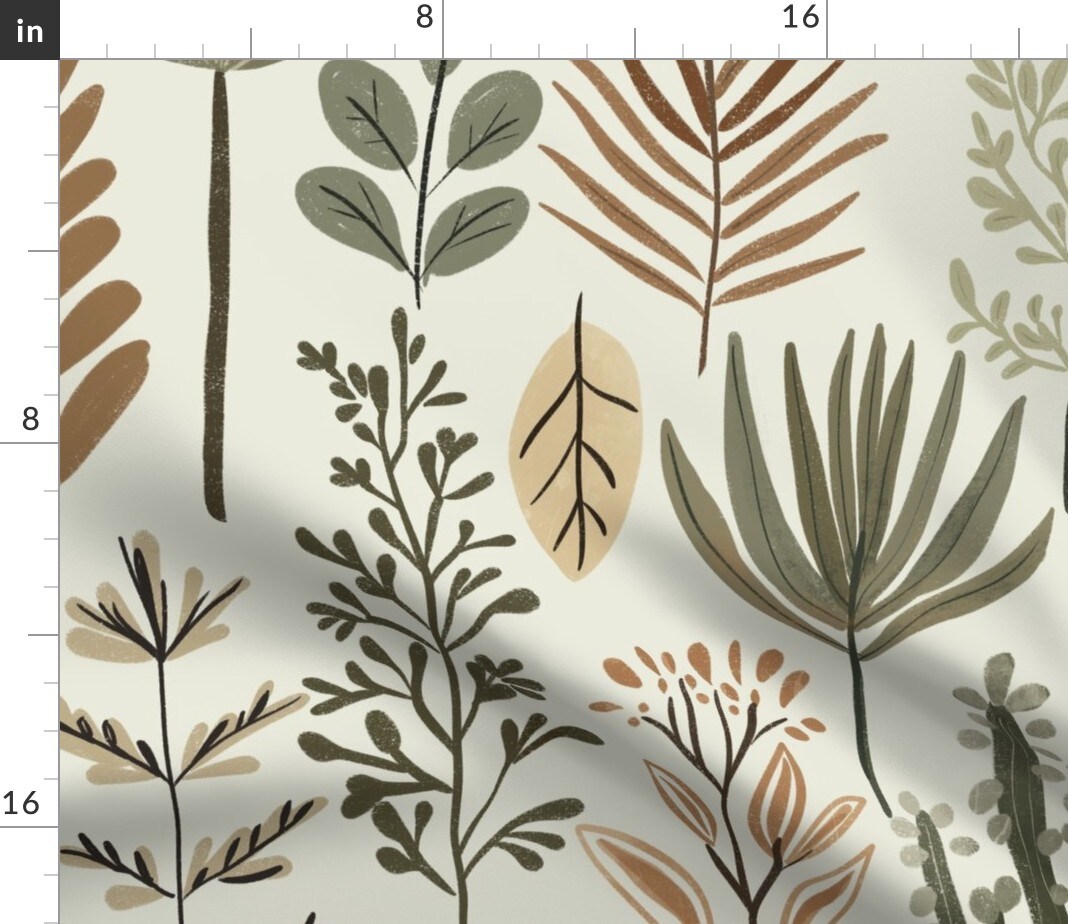 Boho Botanical Tropical Leaves Exotic Nature Bohemian Jungle Muted Colors Zen Serene Custom Printed Fabric by Spoonflower Various Fabrics by the Yard or Fat Quarter
