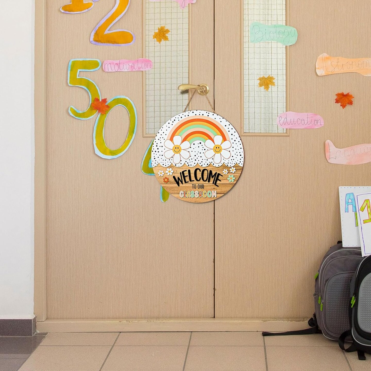 Boho Classroom Welcome Sign – 11.4" Back-to-School Teacher Door Hanger for Classroom, Bulletin Board, Window, or Wall Decor