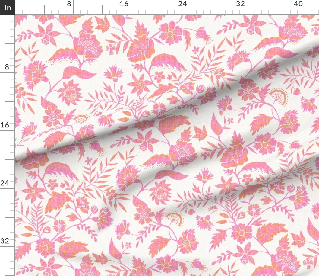 Boho Floral Modern Chintz Garden Vine Cottagecore Pink Coral Custom Printed Fabric by Spoonflower Various Fabrics by the Yard or Fat Quarter