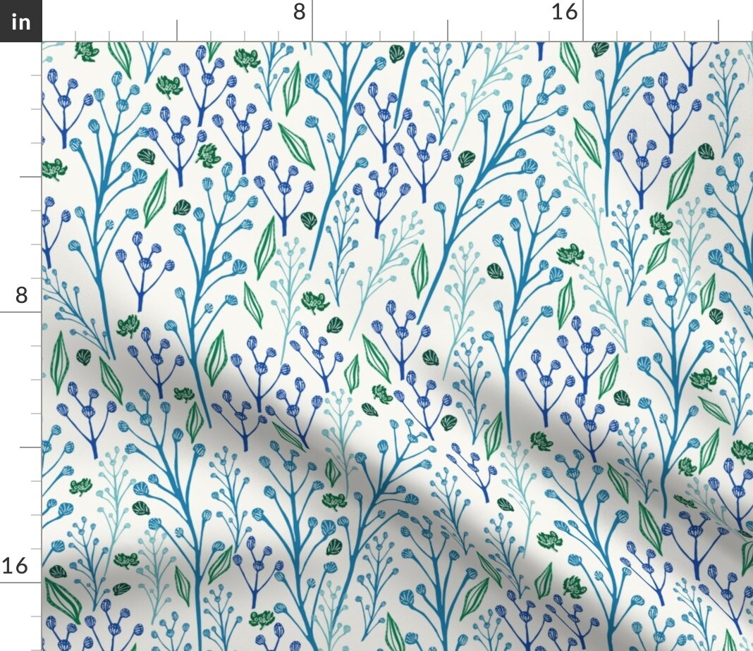Boho Floral Rustic Botanical Green Cool Tones Scandi Custom Printed Fabric by Spoonflower Various Fabrics by the Yard or Fat Quarter
