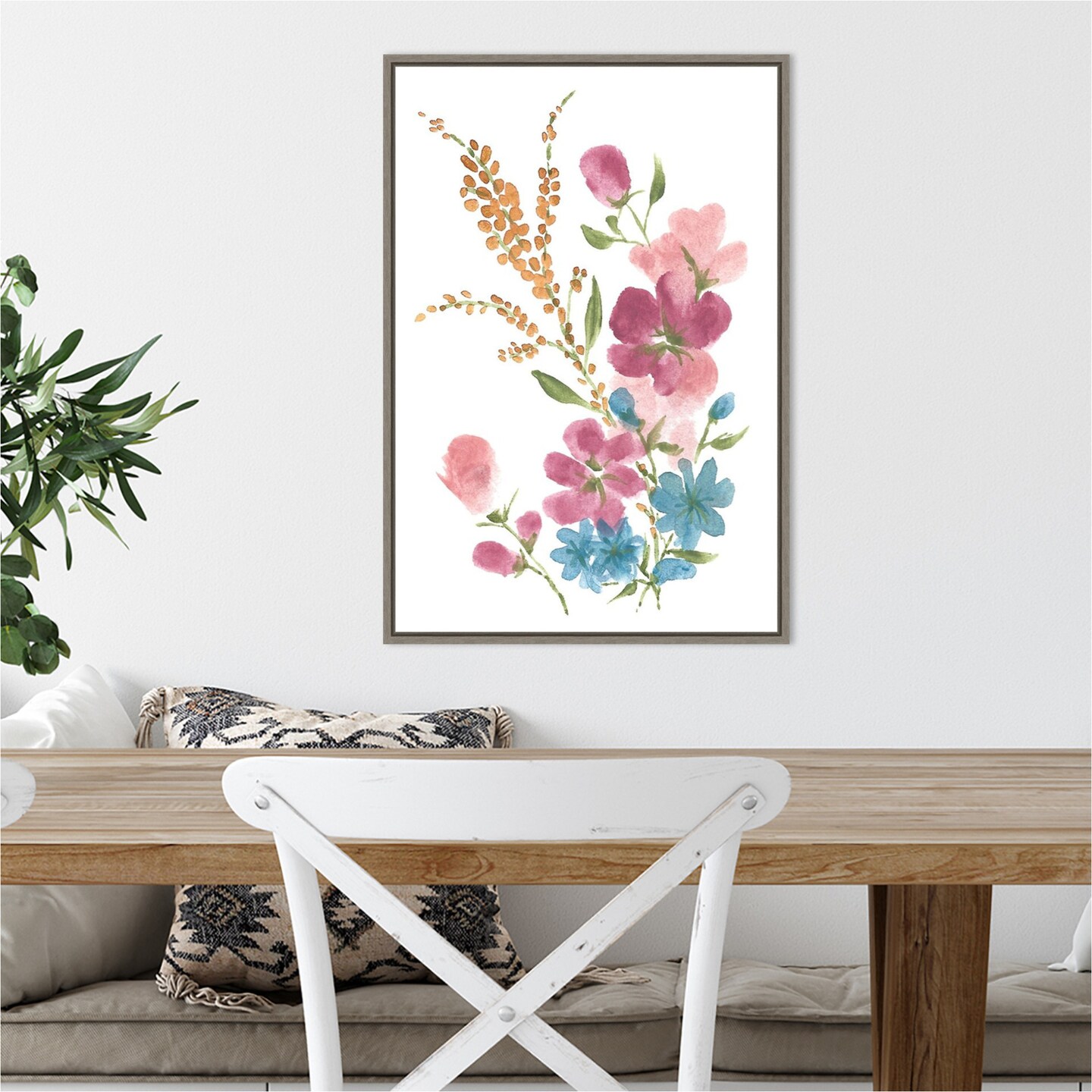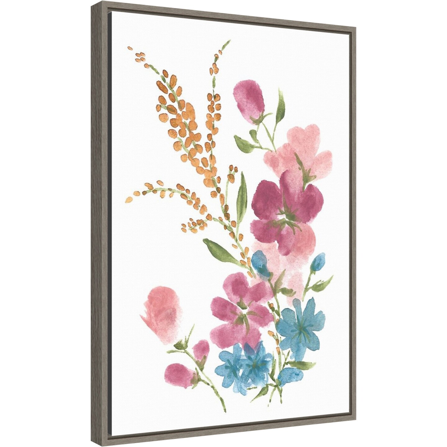 Boho Flower Bouquet I by Yvette St. Amant 16-in. W x 23-in. H. Canvas Wall Art Print Framed in Grey