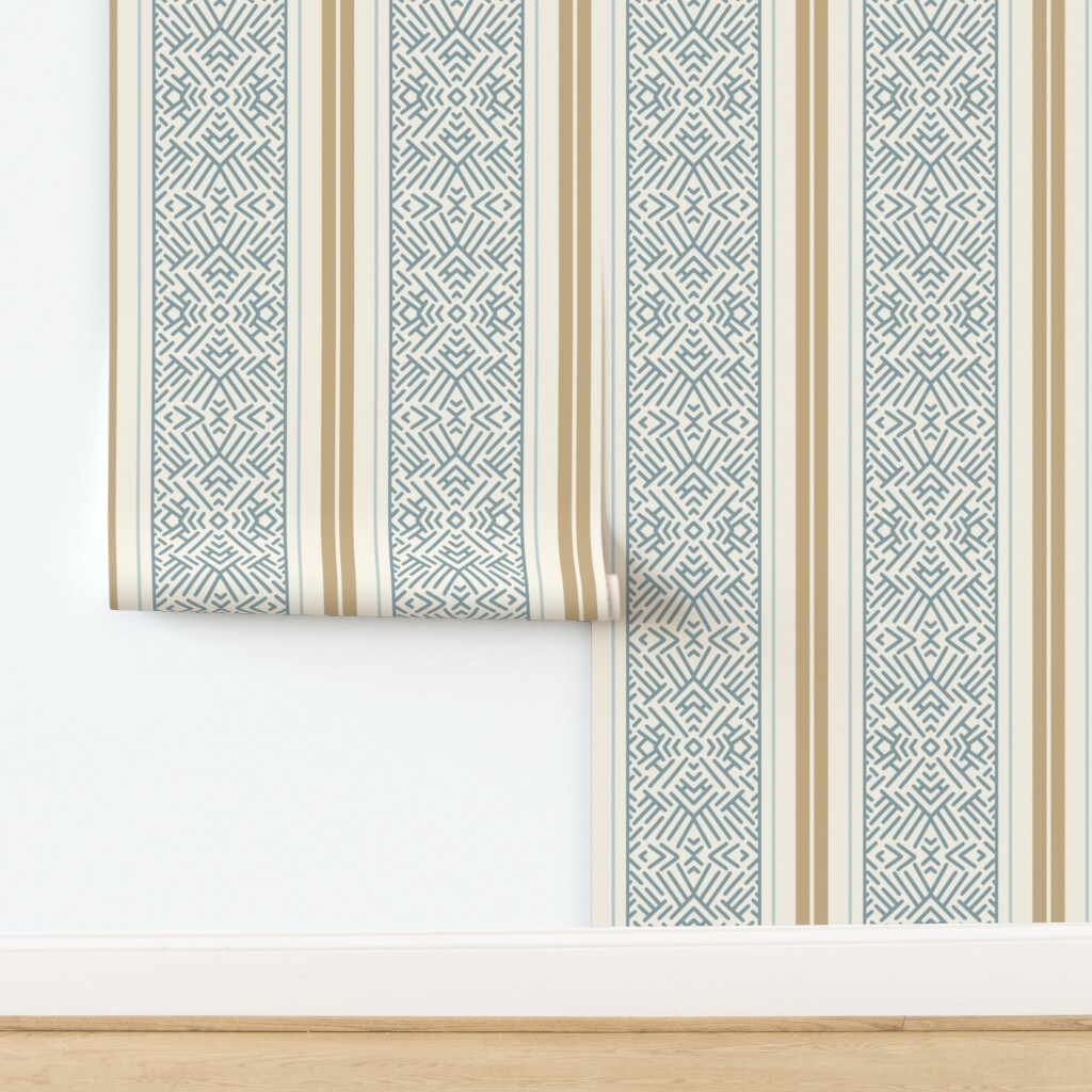 Boho Gold Blue Geometric Bohemian Classic Custom Pre-pasted Wallpaper by Spoonflower Pre-Pasted Wallpaper 2FT Wide
