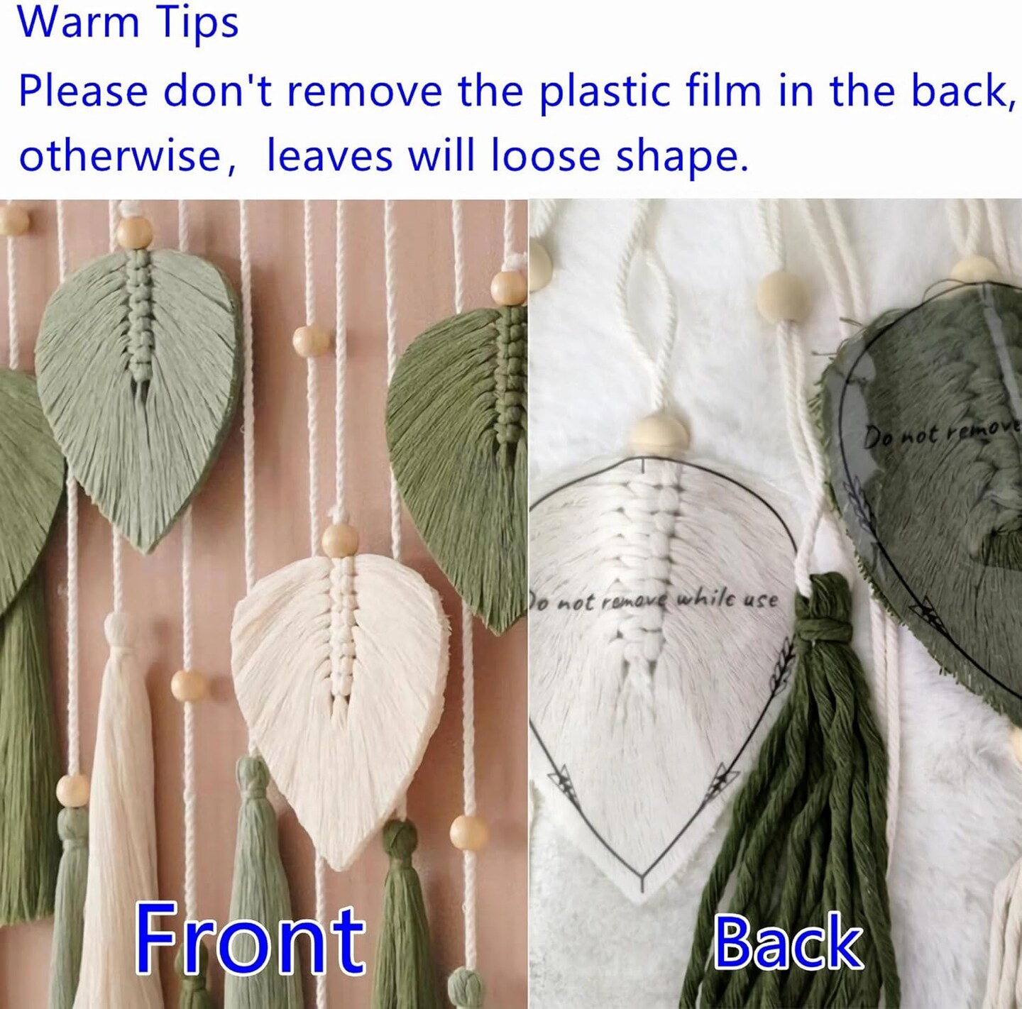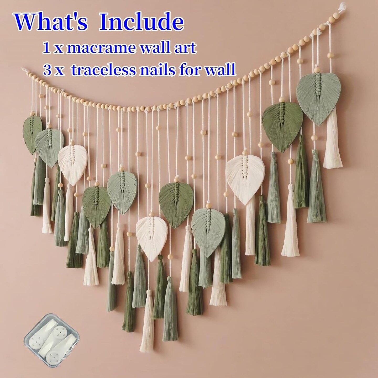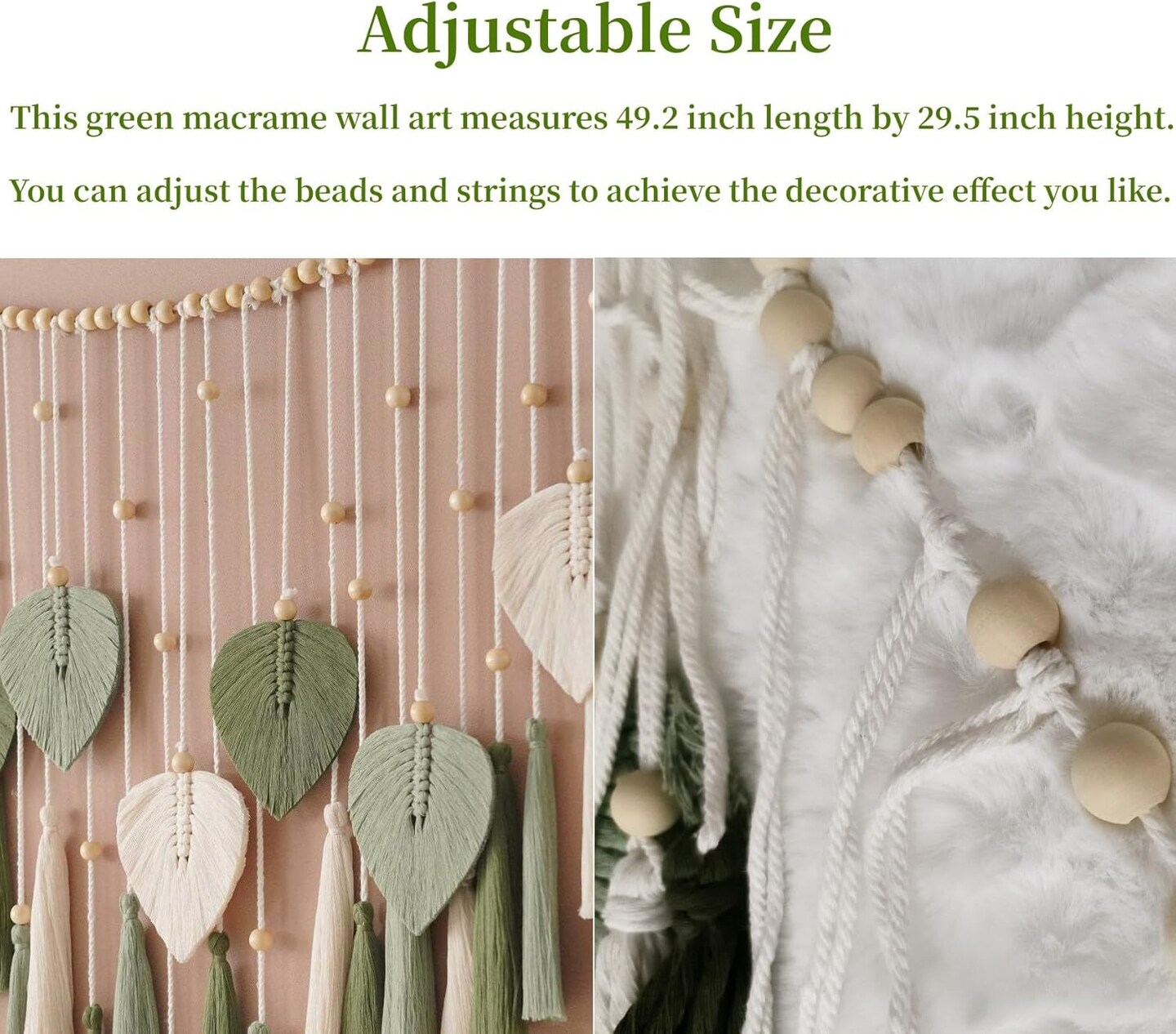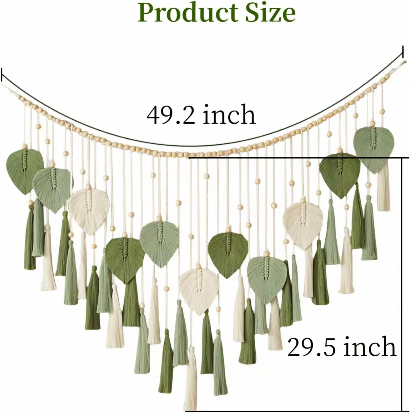 Boho Green Macrame Wall Hanging – 29.5" x 49.3" Leaf & Feather Tassel Tapestry for Bedroom, Living Room, Nursery Decor