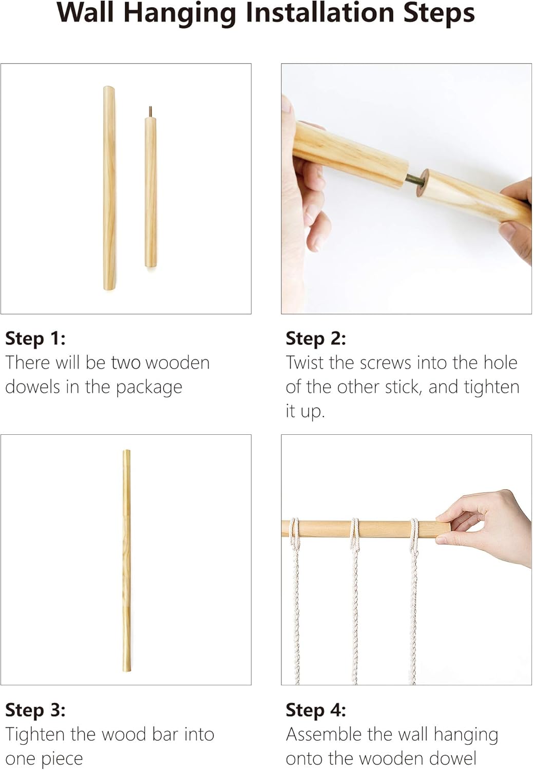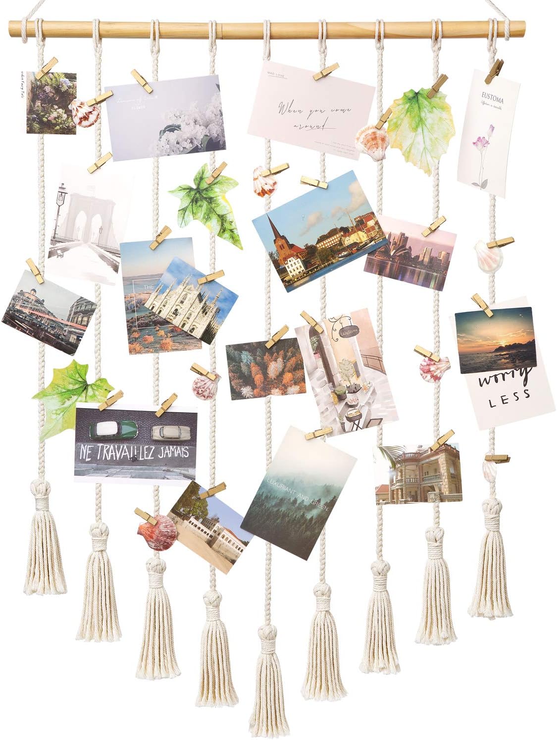 Boho Macrame Hanging Photo Display with 40 Wood Clips, 37" L x 23.6''W (Large)