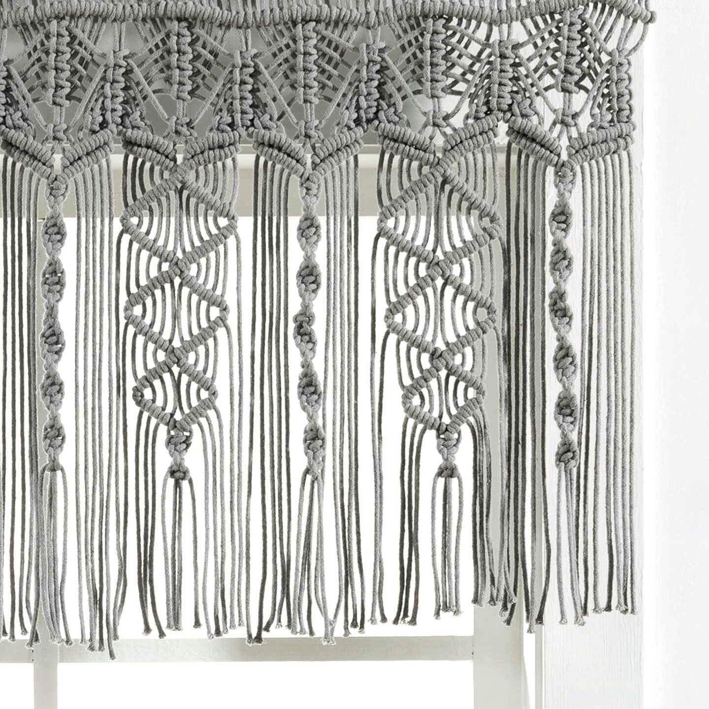 Boho Macrame Textured Cotton Valance Curtain 50" W x 20" L (Gray)