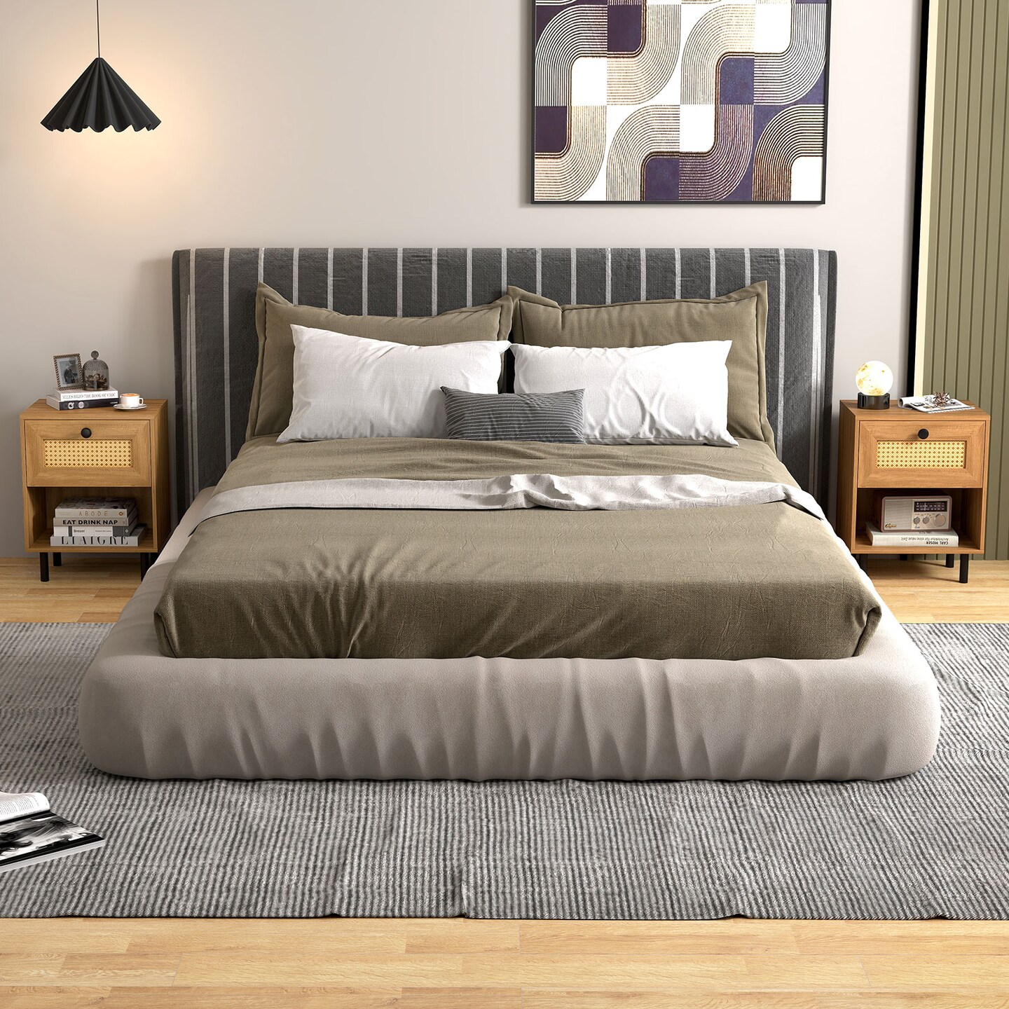 Boho Nightstand Rattan Bedside Table with Drawer and Shelf for Bedroom Living Room