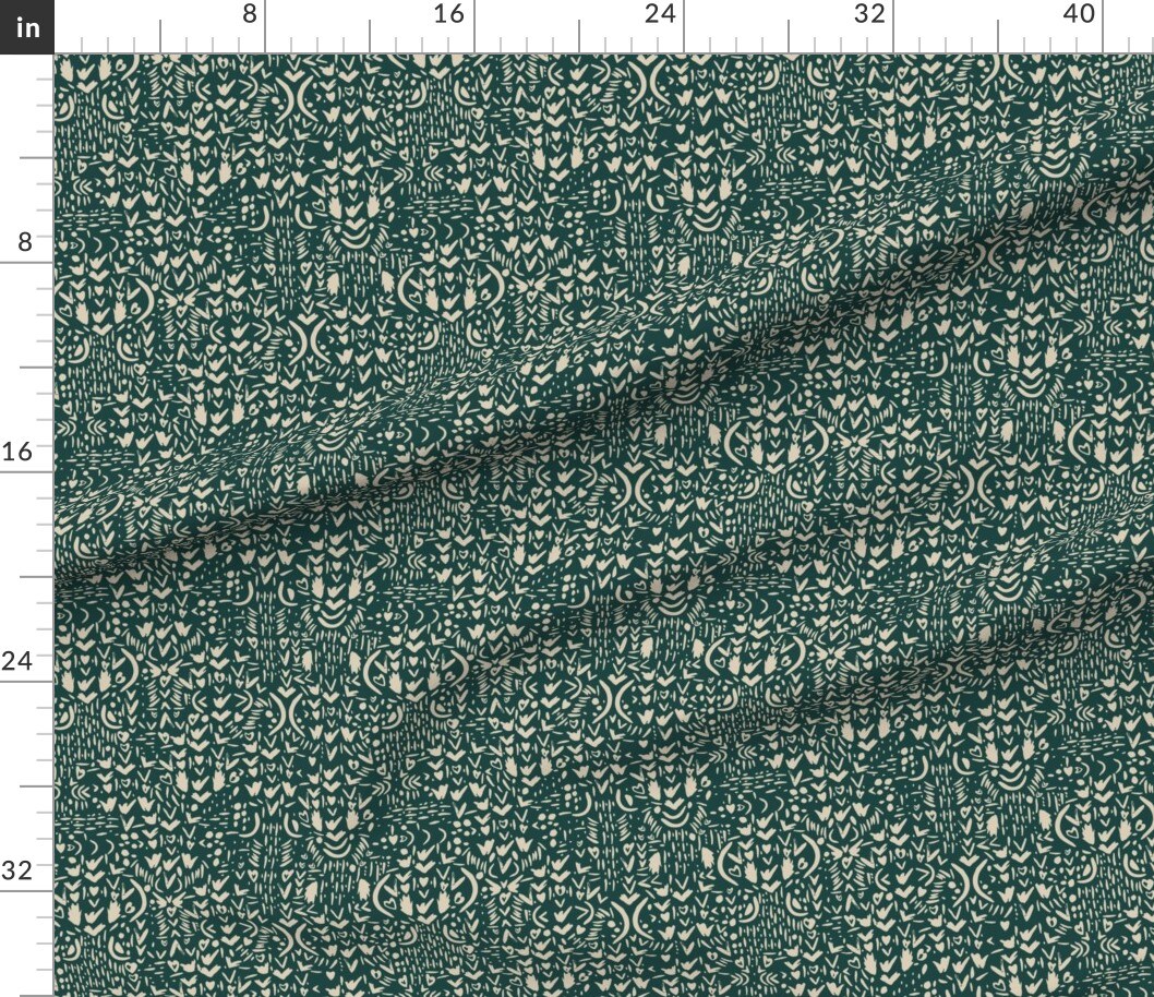 Boho Shapes Dark Green Ditsy Hand Painted Custom Printed Fabric by Spoonflower Various Fabrics by the Yard or Fat Quarter