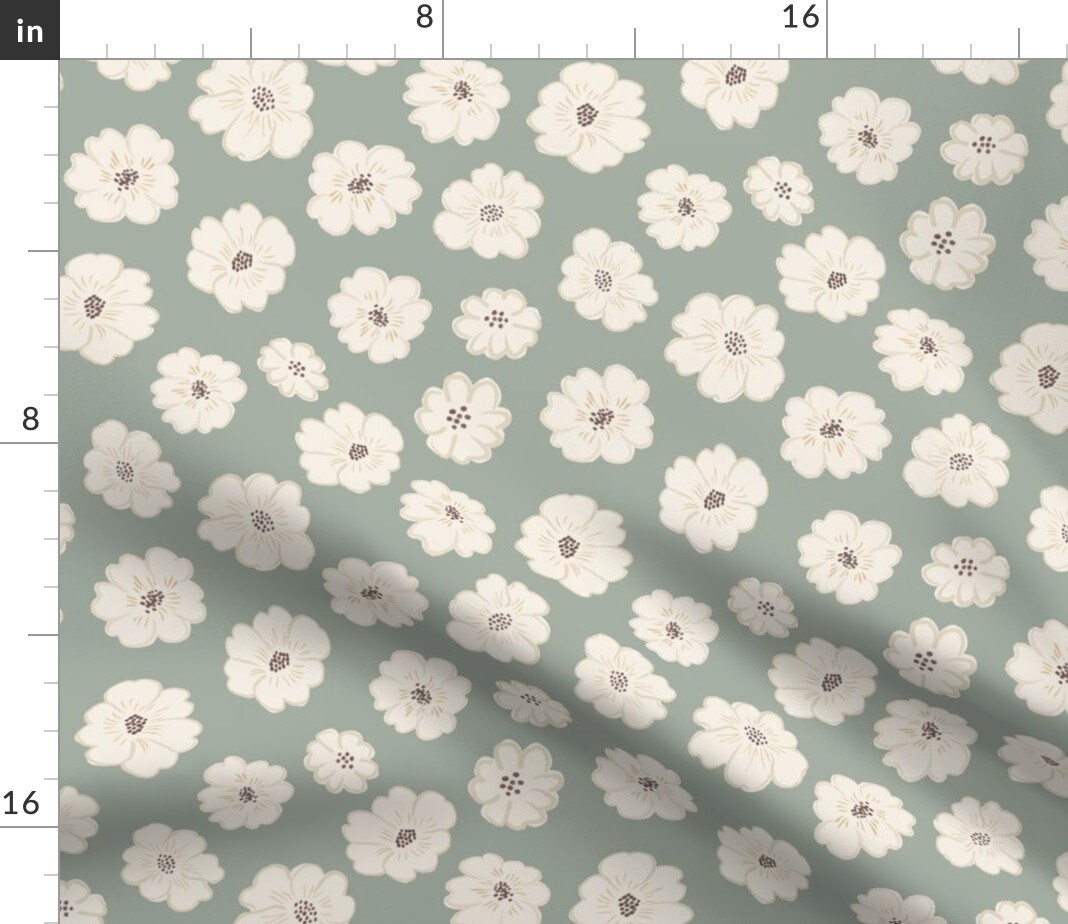 Boho Soft Green Botanical Modern Floral Neutral Custom Printed Fabric by Spoonflower Various Fabrics by the Yard or Fat Quarter